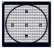 아래의 reticle mask는 전체 웨이퍼의 이미지를 표함하고 있다. 이러한 유형의 reticle은 1.5A이상의 소자에 사용된다. 좀더 작은 크기의 소자에는 오른쪽 reticle mask가 사용된다. 이는 웨이퍼의 표면 위에 단지 하나의 소자 이미지를 반복적으로 그린 것을 나타낸다.