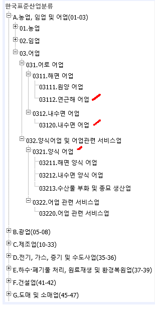 ④ 어로·양어란통계청장이 고시하는 한국표준산업 분류에 따른 어업중 연근해어업, 내부면어업, 양식어업을 말한다.