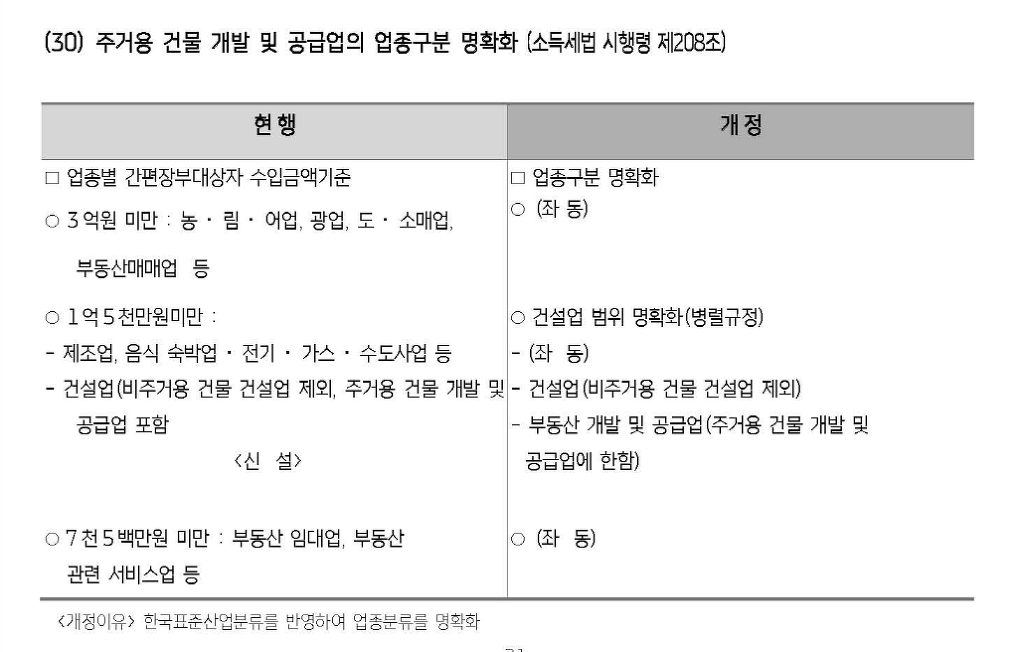 (25) 주거용 건물 개발 및 공급업의 업종구분 명확화(소득령 §208)