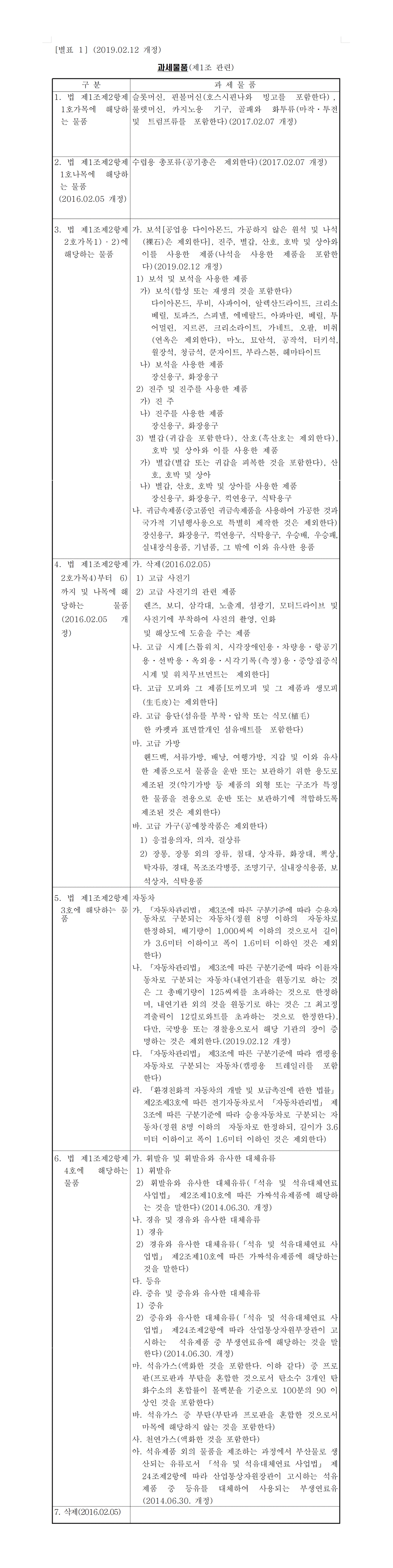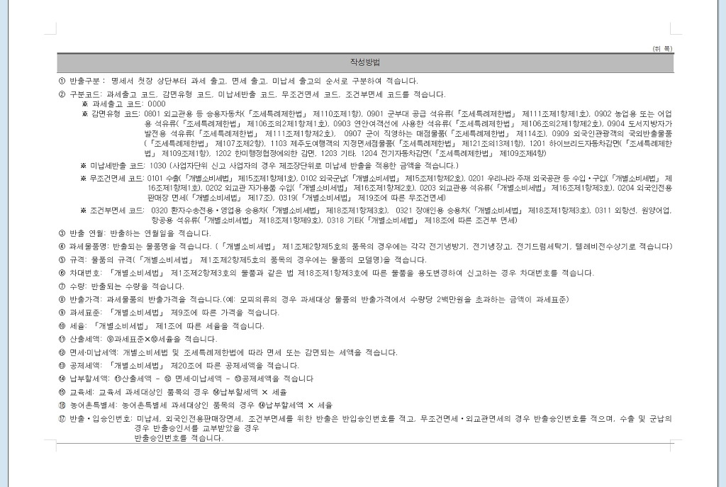 7. 면세대상물품의 명세