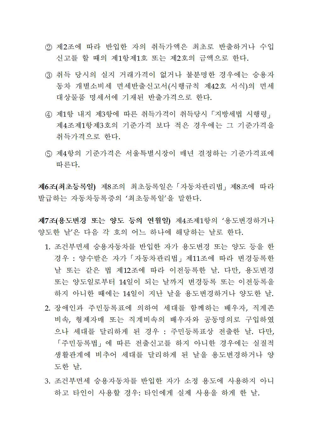 제2조(적용대상자) 1. 개별소비세법 제18조제1항제3호의 규정에 따라 개별소비세 조건부면세 승용차가 정당한 면세 절차를 거쳐 제조장 및 보세구역에서 반출된 승용차를 반입한 자