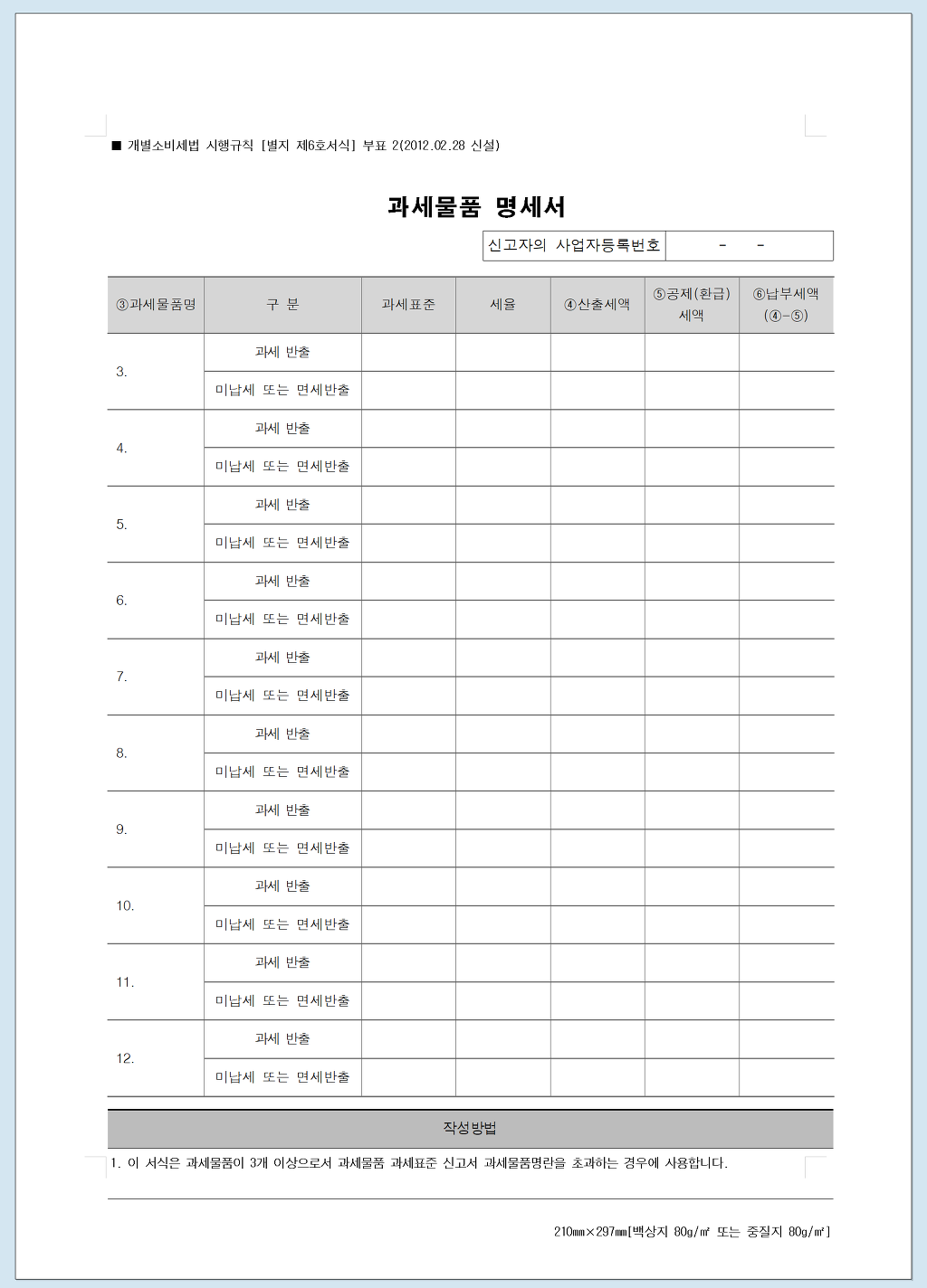 과세물품 과세표준신고서 ■개별소비세법 시행규칙 (별지 제6호서식) (2014.03.14 개정).xlsx
