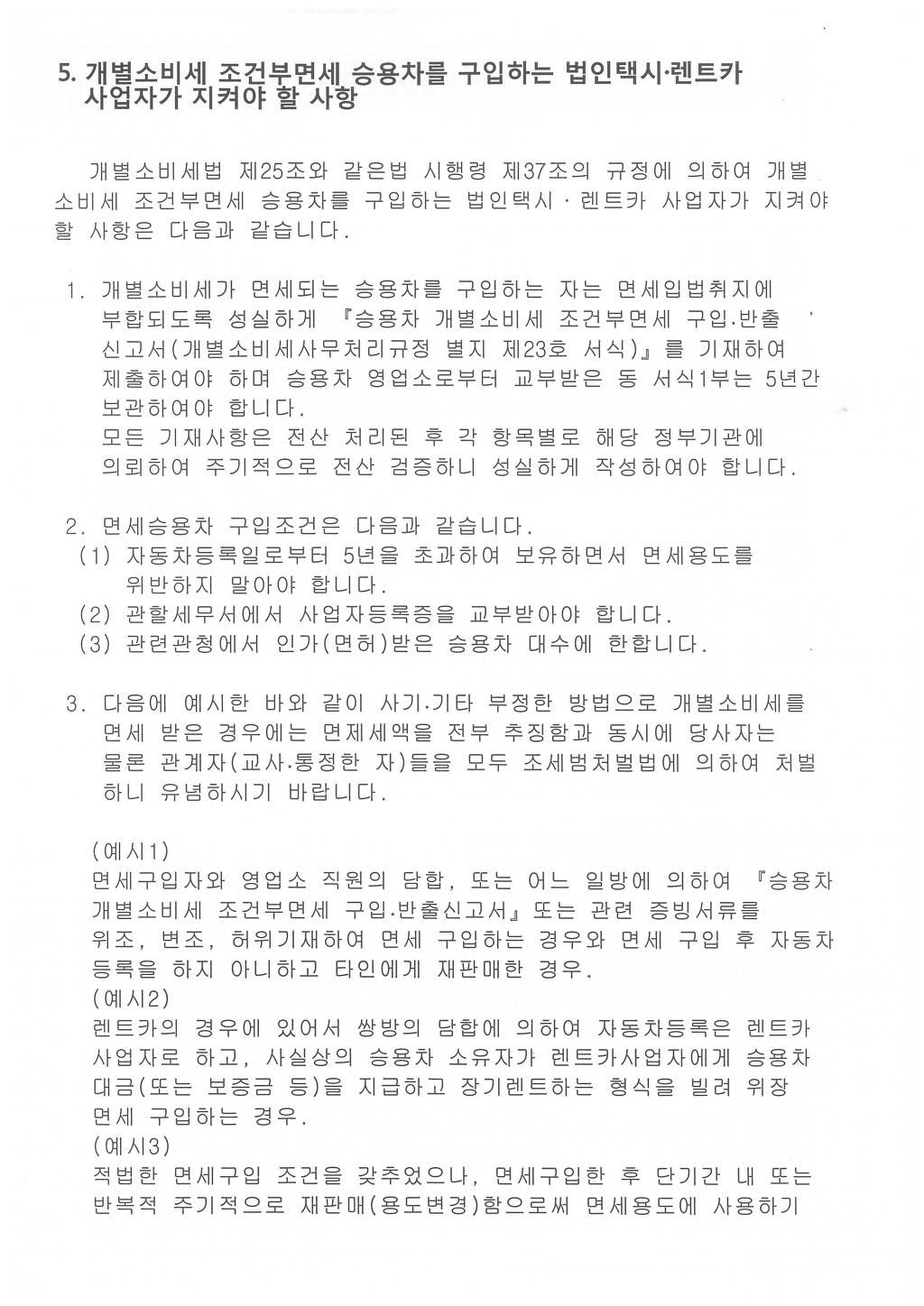 개별소비세 조건부면세 승용차를 구입하는 “렌트카사업자”가 지켜야할 사항은?