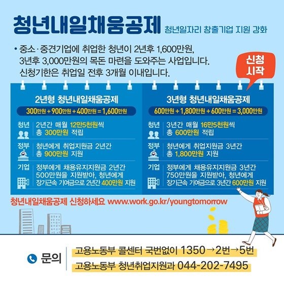 청년내일채움공제 역시 청년직원의 장기 근속 보장과 목돈 마련을 위한 제도로서 청년내일채움공제를 가입한 직원 뿐 아니라 기업에서도 지원금을 수령할 수 있습니다.