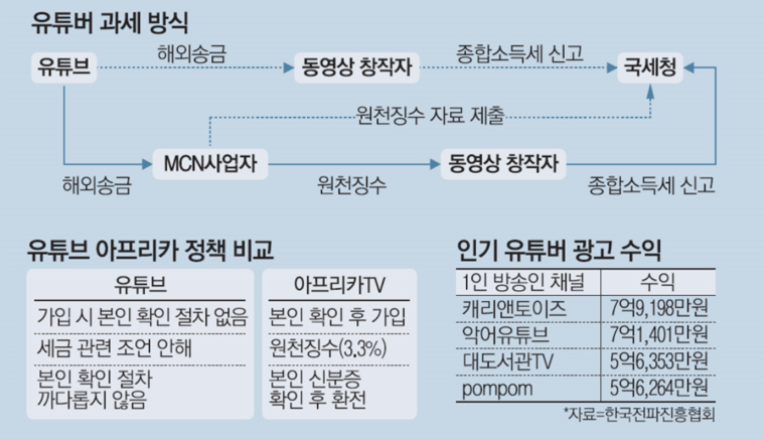 참고로 ‘구글 애드센스’(영상 시작과 중간에 들어가는 광고)로의 수입은 광고의 CPM(Cost Per Mille∙1000회 광고를 노출시키는 데 사용된 비용) 단가는 국내에서 조회수 1건 당 1원정도라고 합니다.