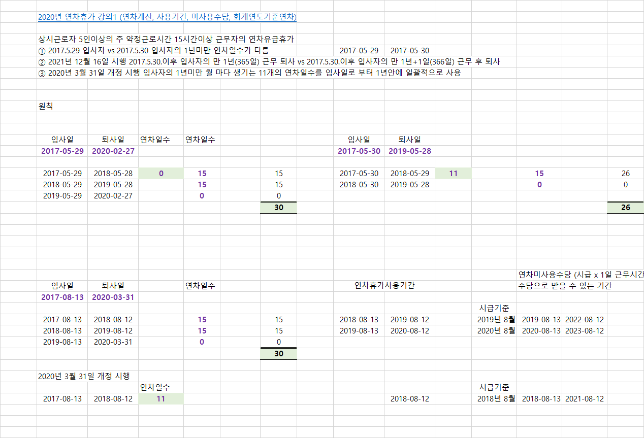 2020년 연차휴가 강의1 (연차계산, 사용기간, 미사용수당, 회계연도기준연차)