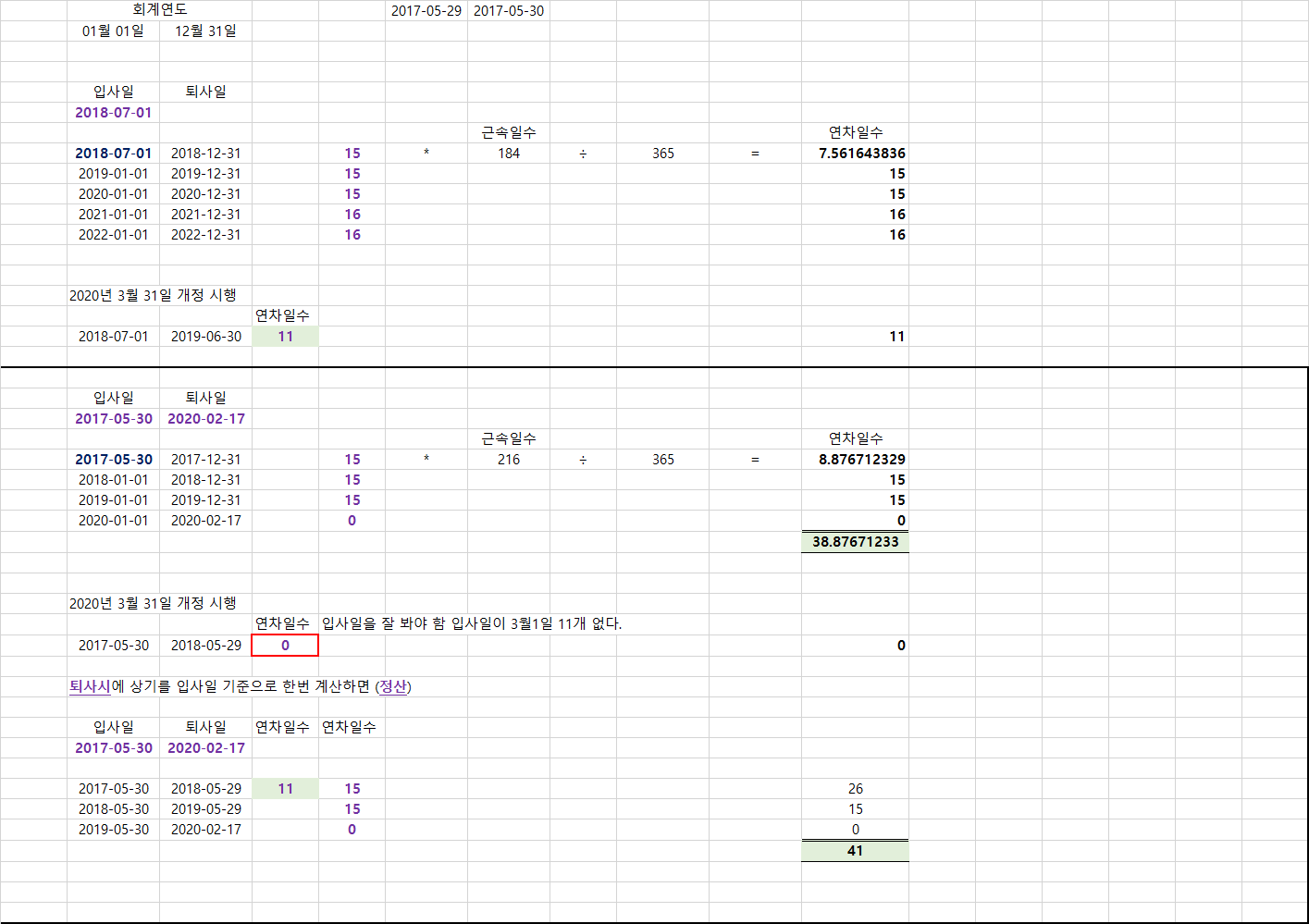 ② 2021년 12월 16일 시행 2017.5.30.이후 입사자의 만 1년(365일) 근무 퇴사 vs 2017.5.30.이후 입사자의 만 1년+1일(366일) 근무 후 퇴사