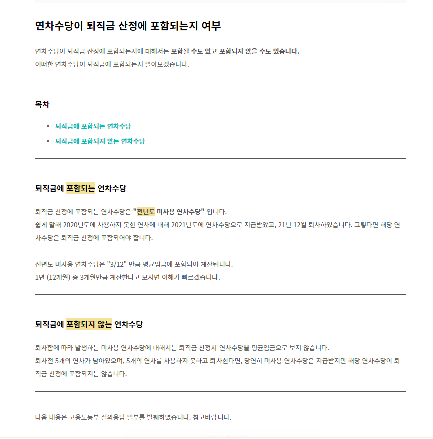 즉, 정규직도 1년(365일) 근로한 후 퇴직하면 1년간 80%의 출근율에 따라 주어지는 15일의 연차에 대한 미사용 수당을