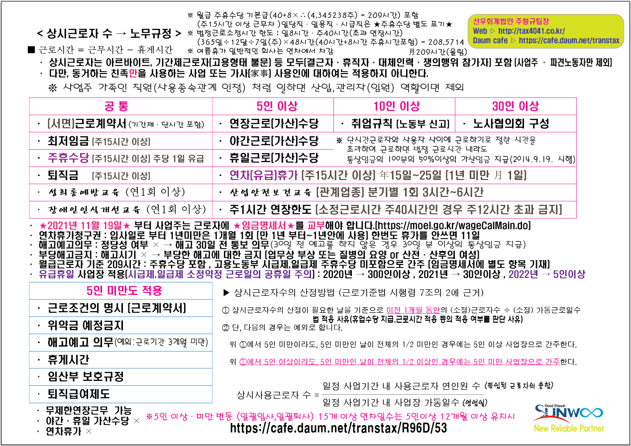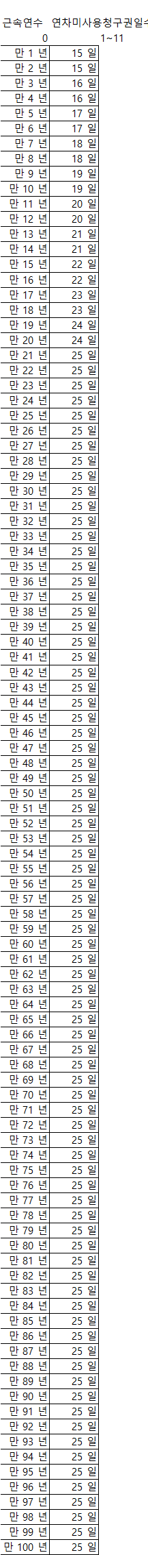 상시근로자 5인이상의 주 약정근로시간 15시간이상 근무자의 연차유급휴가