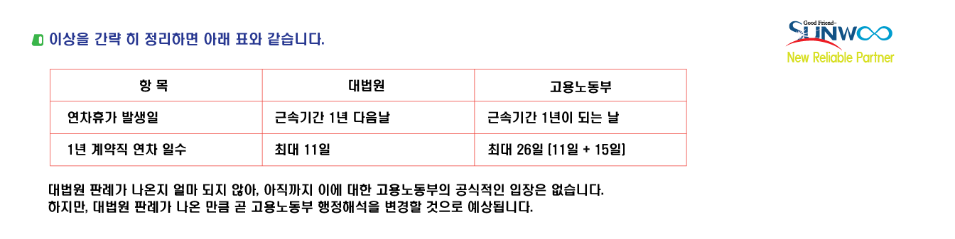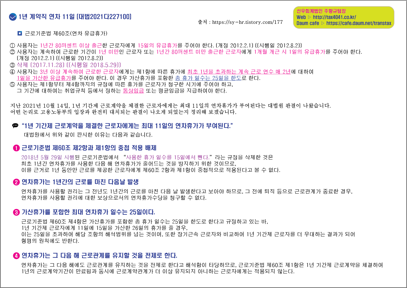 당시 대법원은 “1년 기간제 근로계약을 체결한 근로자에게는 최대 11일의 연차가 부여된다.”고 했고,