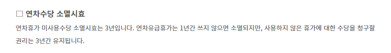 존재하며, 미사용한 연차유급휴가수당의 100%를 연차유급휴가미사용수당으로 지급함