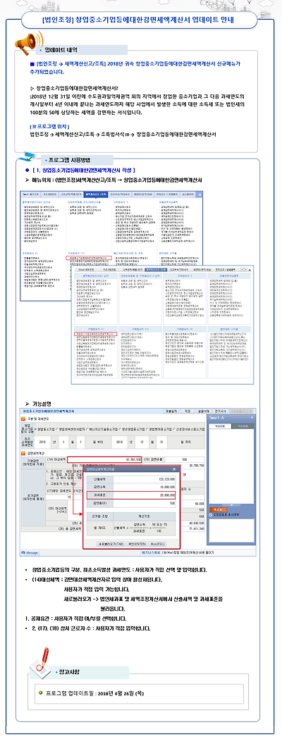 창업중소기업등에 대한 감면세액계산서 업데이트 안내 작성자EYEDI|작성시간18.04.30|조회수302 목록 댓글 0 글자크기 작게가 글자크기 크게가 다음검색 현재 게시글 추가 기능 열기 북마크 공유하기 신고 센터로 신고 댓글 댓글 0 댓글쓰기 답글쓰기 댓글 리스트