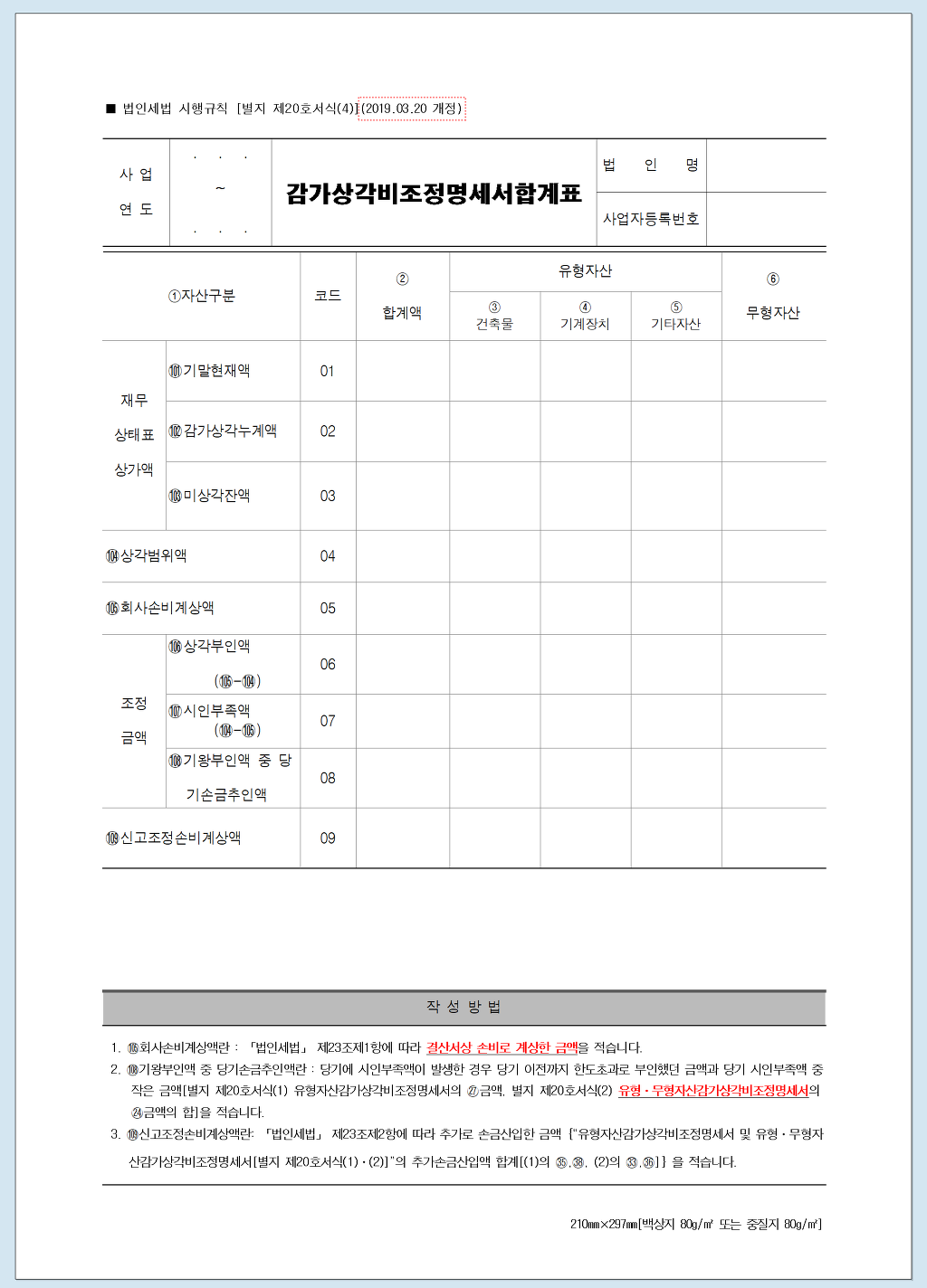 대원칙은 감가상각비 조정명세서 합계표는 감가상각(회사손금계상) 한 자산에 대해서 기재해야 합니다. 양도이던 미양도이던. |