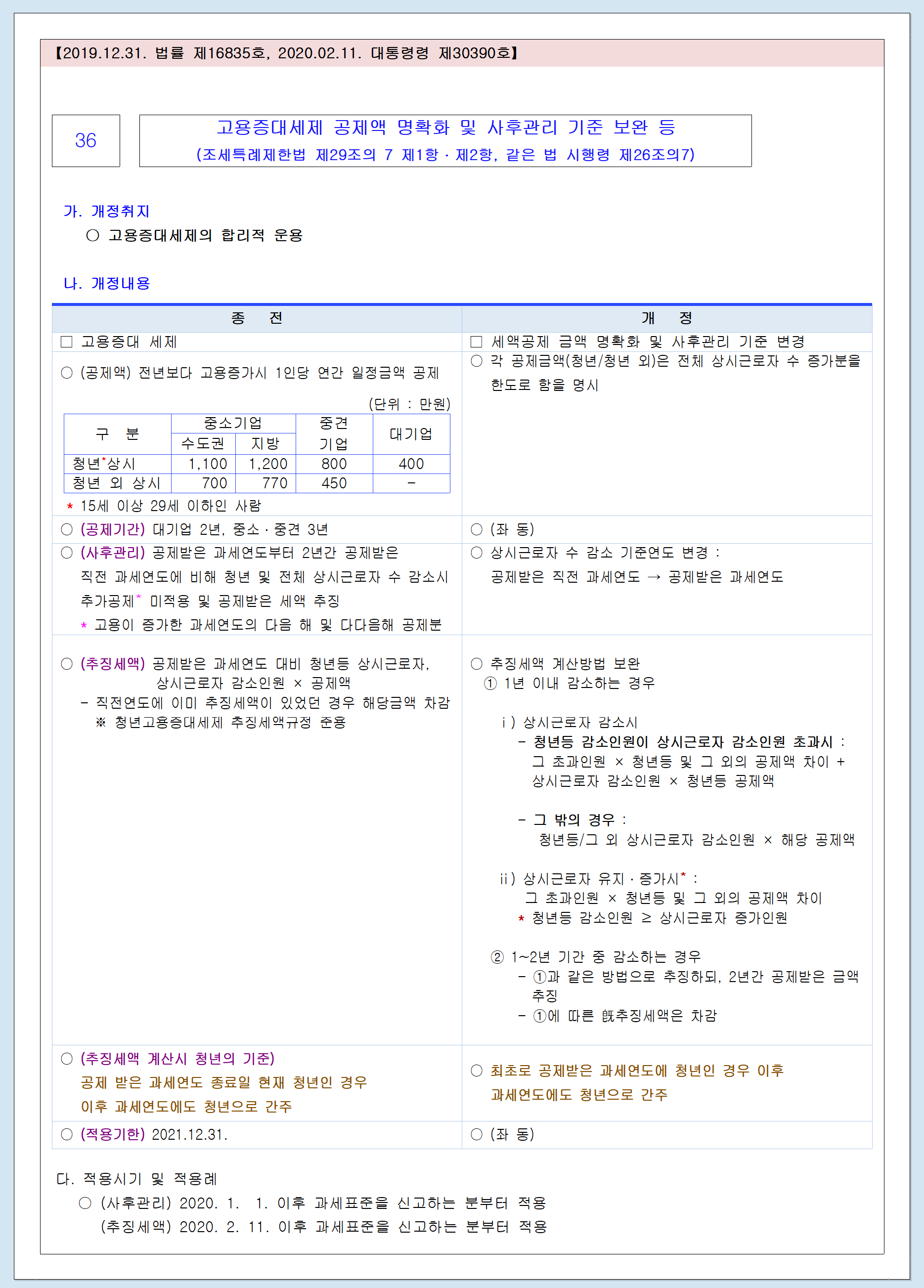 고용증가에 따라 고용증대세제 혜택을 받은 기업이 고용이 감소했더라도 2020년에 한정해 사후관리를 적용하지 않는다.