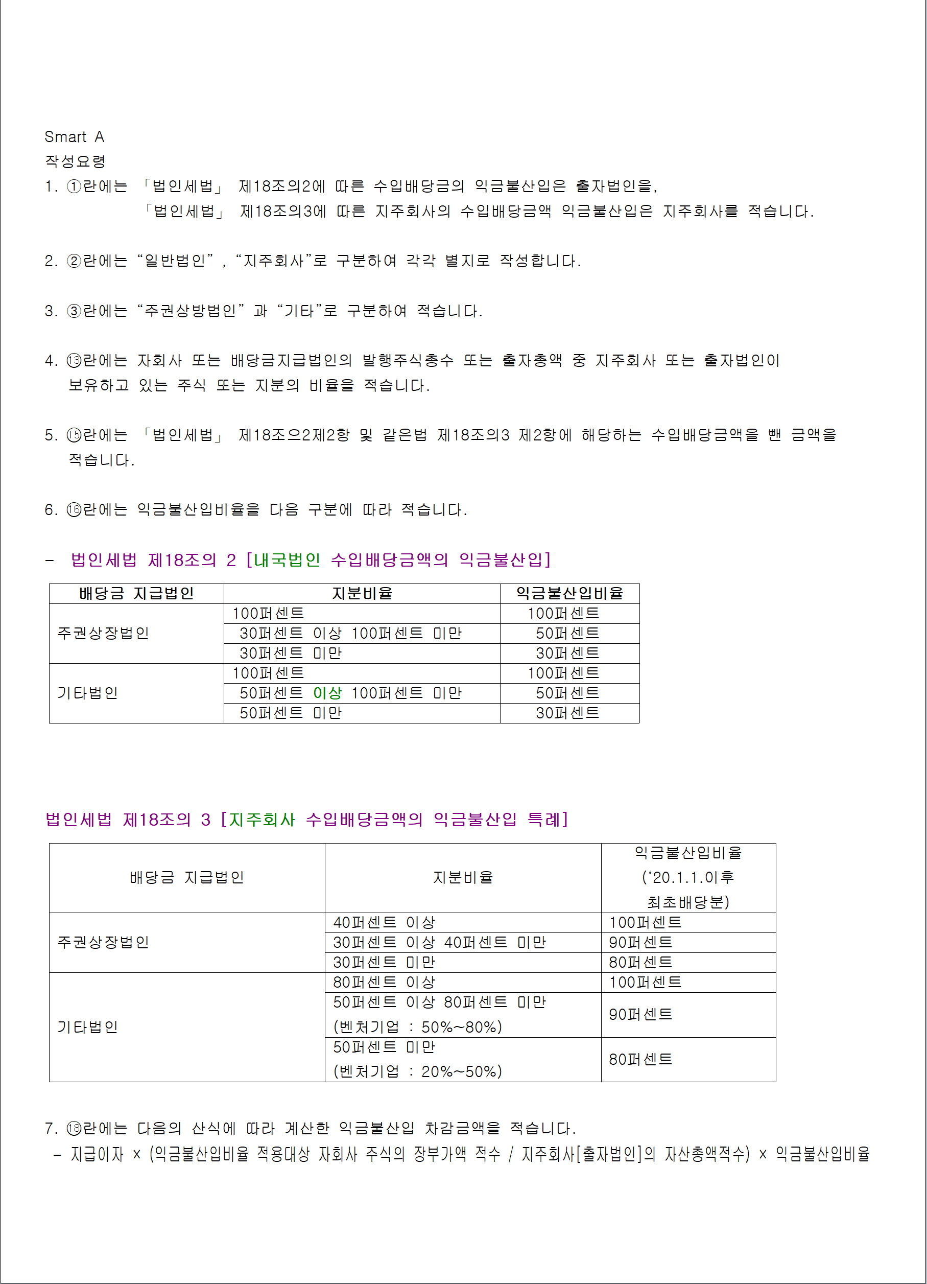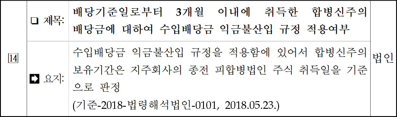 법인으로 한정한다)으로부터 받은 수입배당금액(2018.12.24 개정)