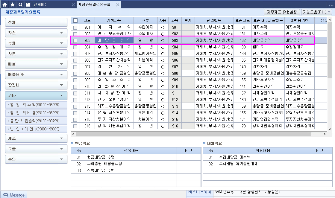 상기 대손충당금환입 계정은 기업회계기준상 계정과목이 없어 졌음.