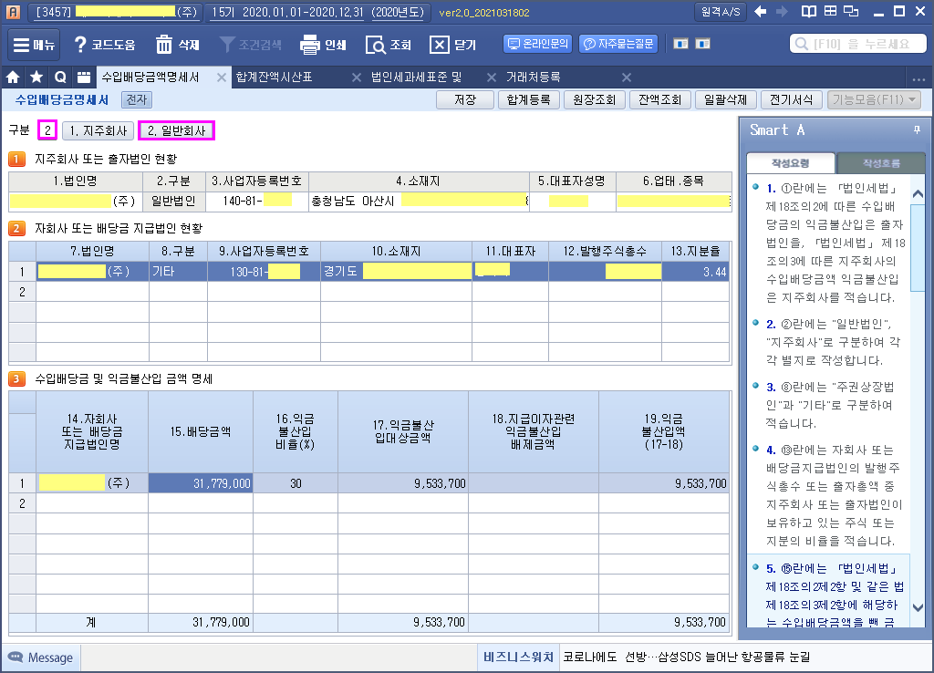 부터 받은 수입배당금액(2018.12.24 개정)