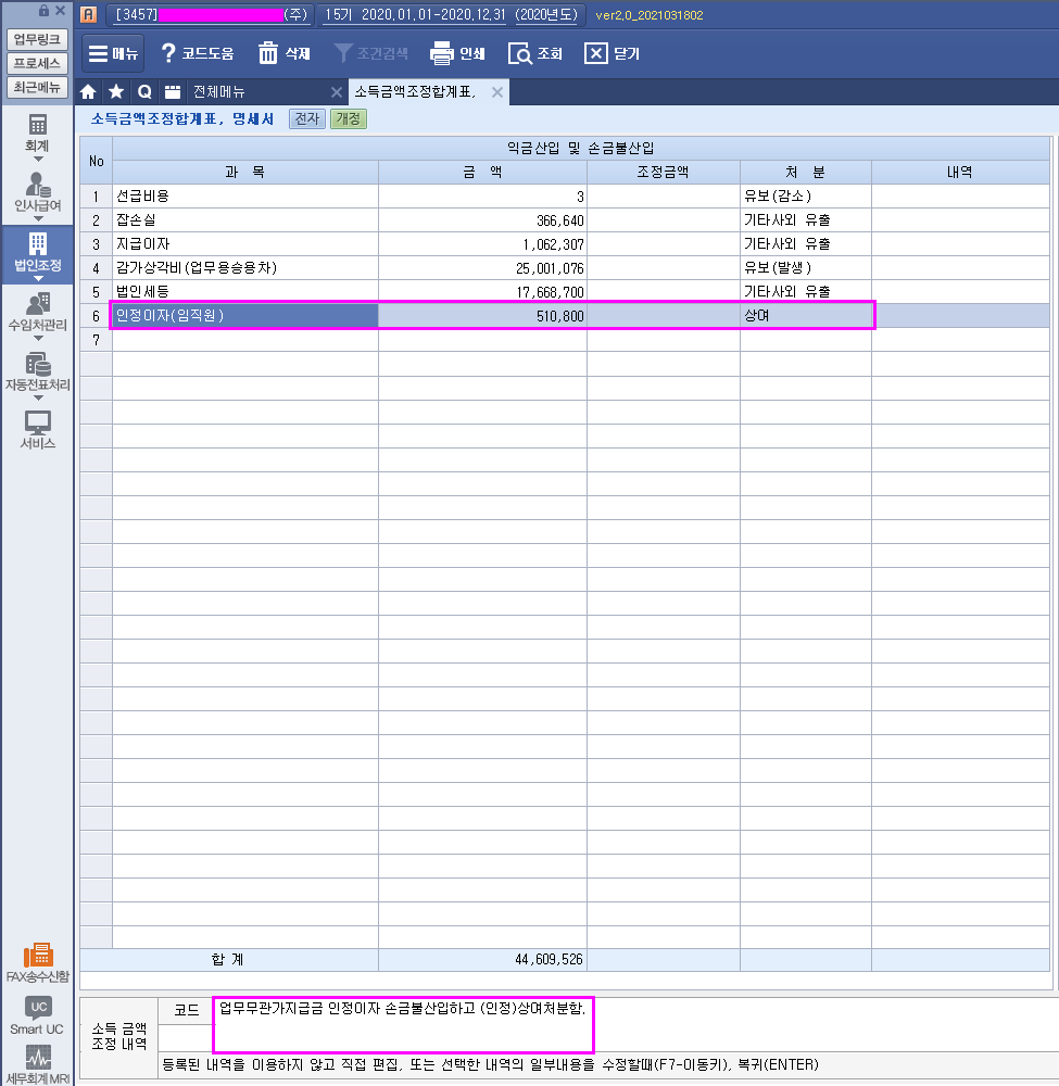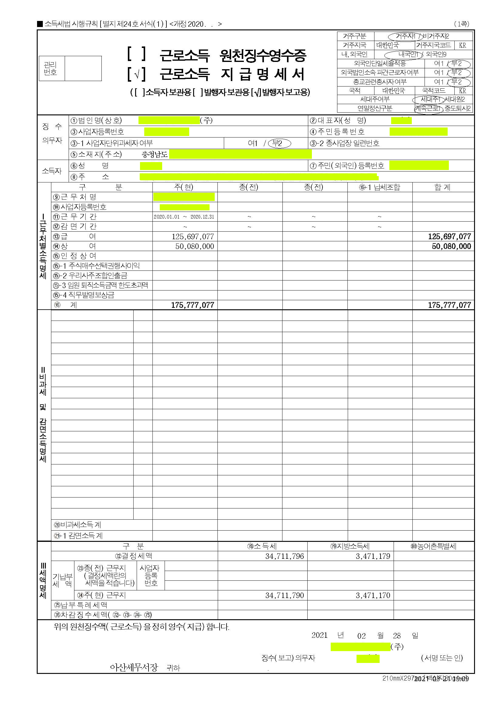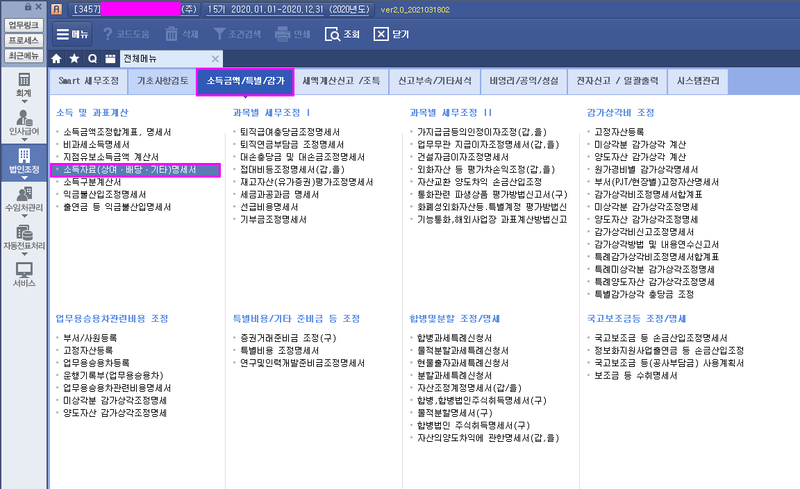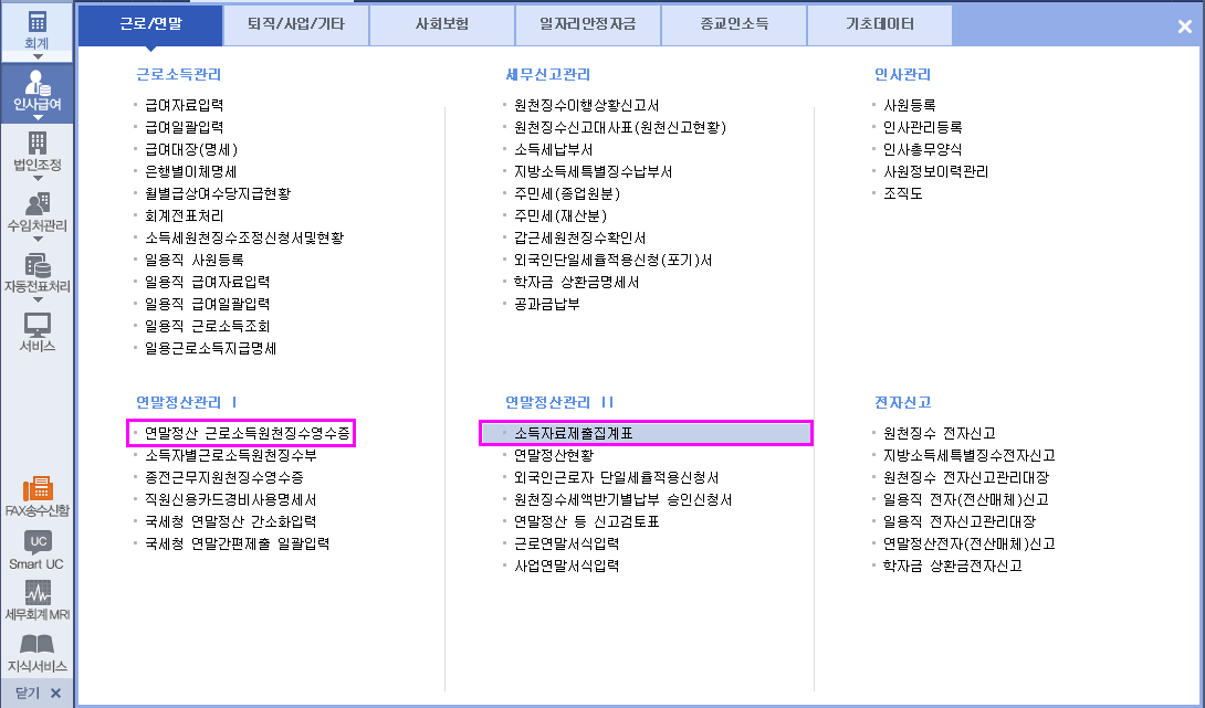 근로소득원천징수영수증 마감해제 및 수정 작업