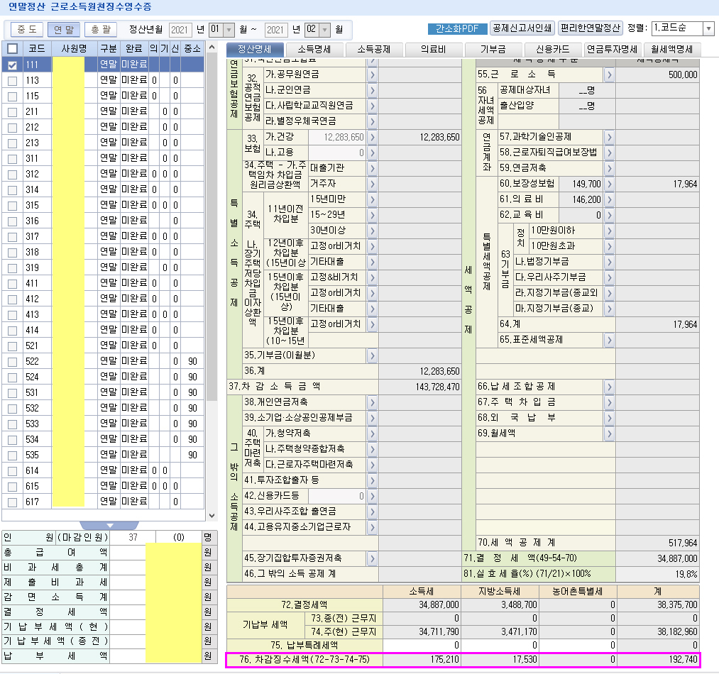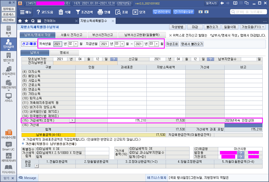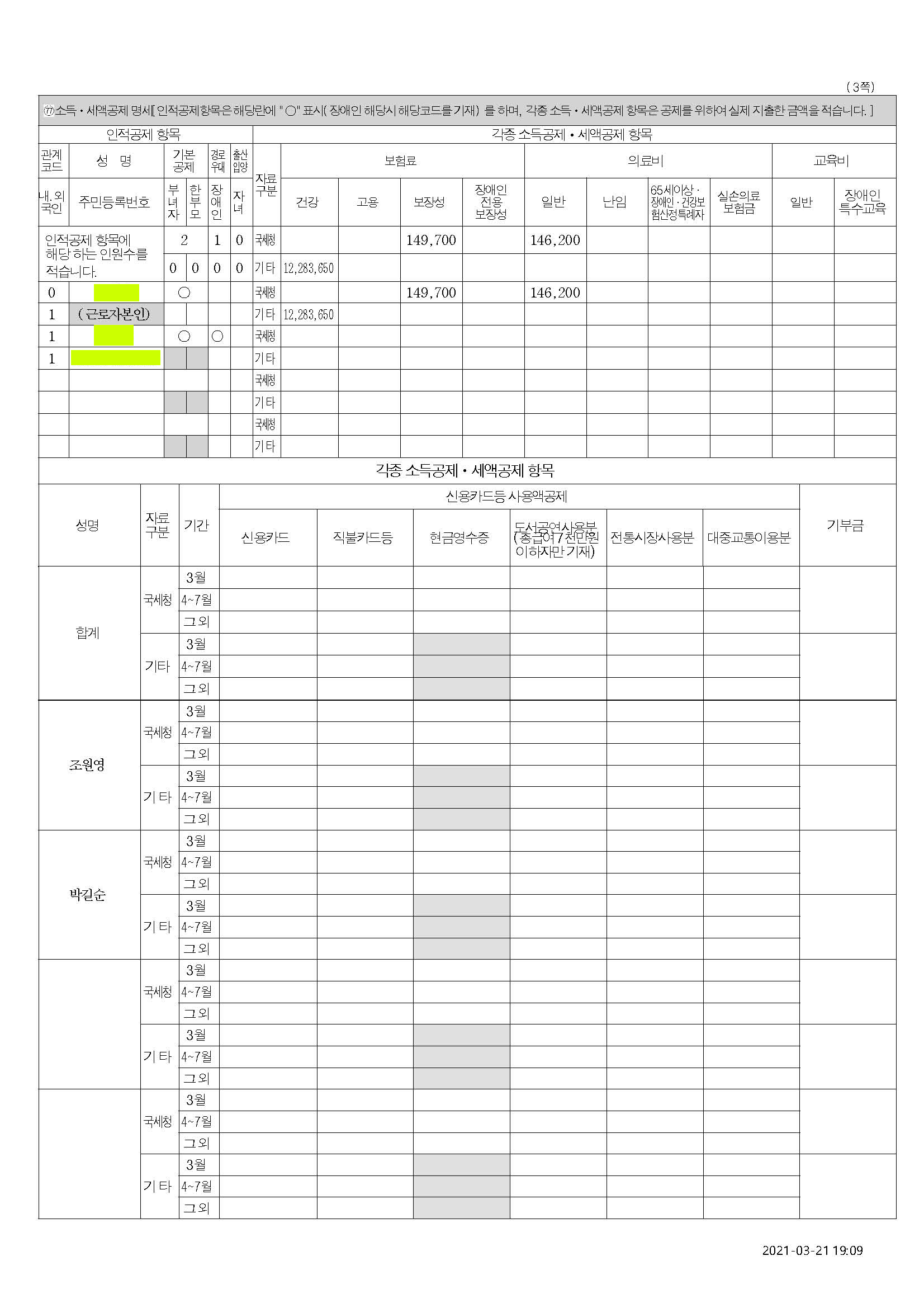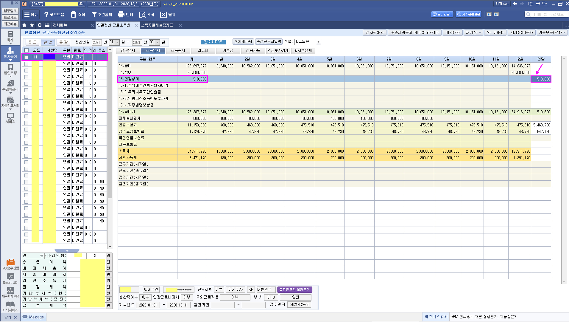 소득자료제출집계표도 수정전에 2021년 02월 ~ 2021년 02월 저장된 데이터를 불러오시겠습니까? 아니오 해서