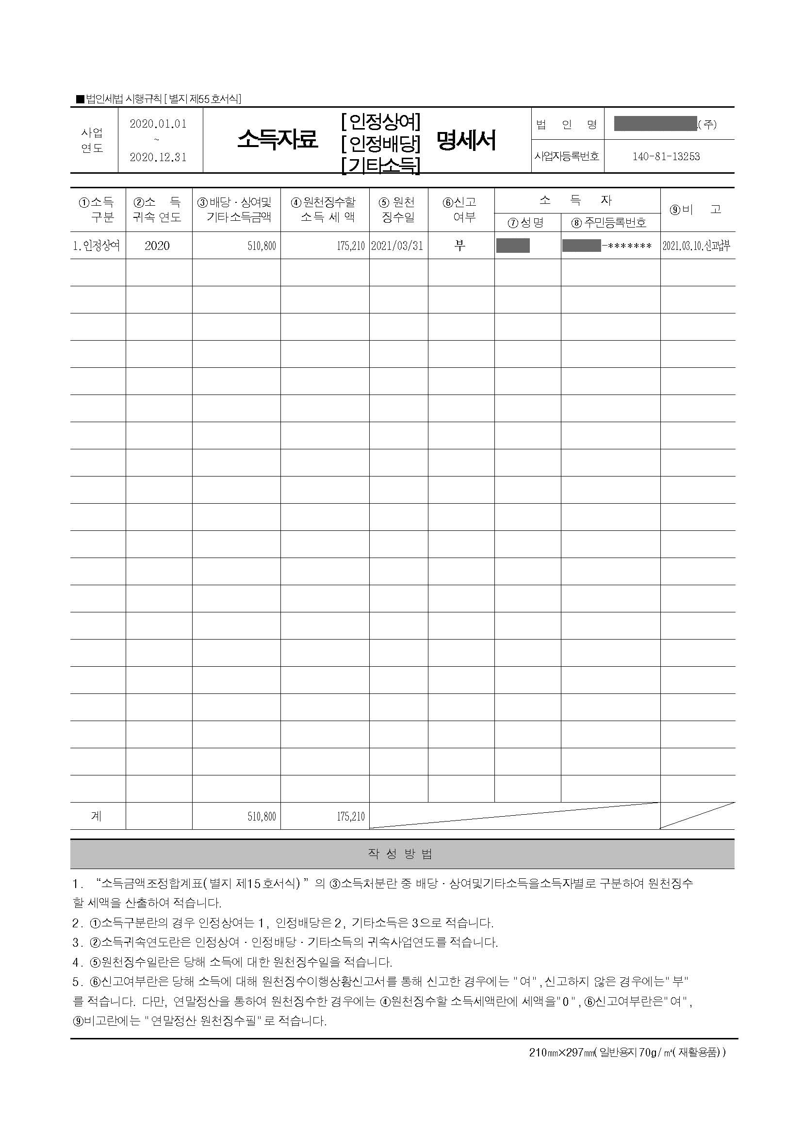 근로소득원천징수영수증 수정 전에 미리 수정 전 근로소득원천징수영수증을 출력및 pdf로 저장한다.