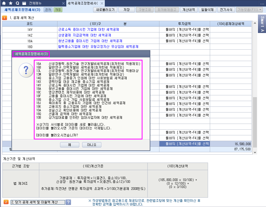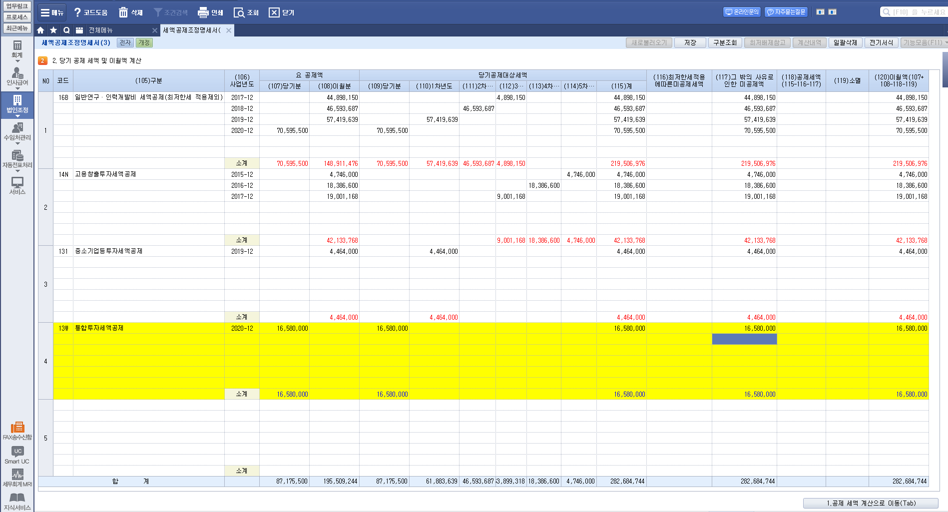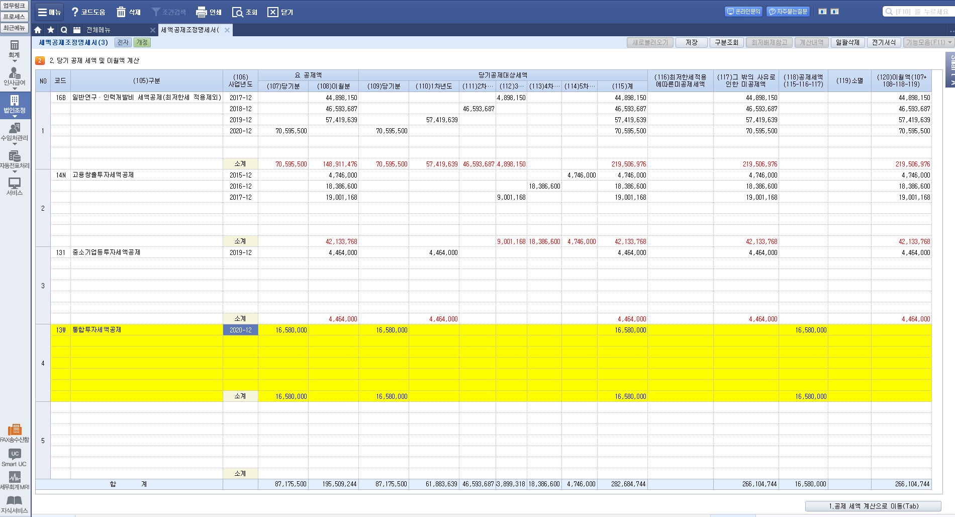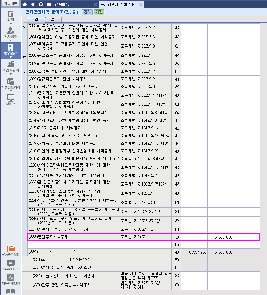 통합투자세액공제 클릭 > F4클릭 > 직접투자금액 입력
