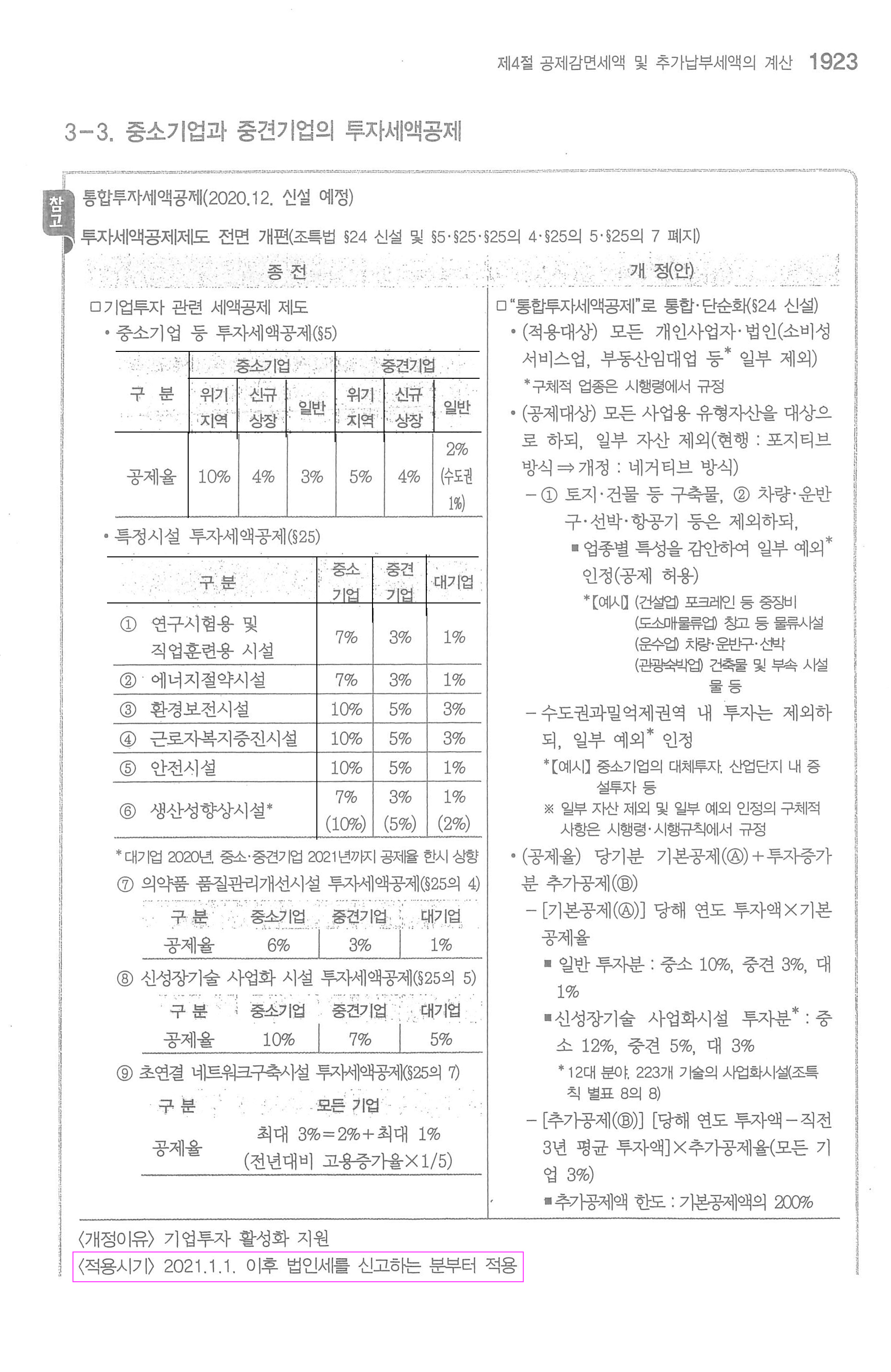 1) 조세특례제한법시행령 제4조 [ 중소기업 등 투자세액공제(2021.02.17 삭제) ]