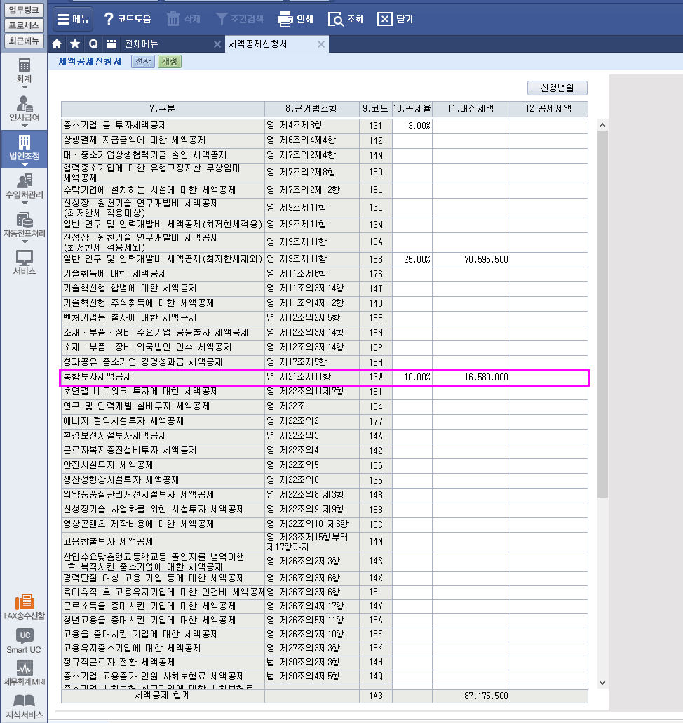 13) 조세특례제한법 제24조 [ 통합투자세액공제(2020.12.29 신설) ]