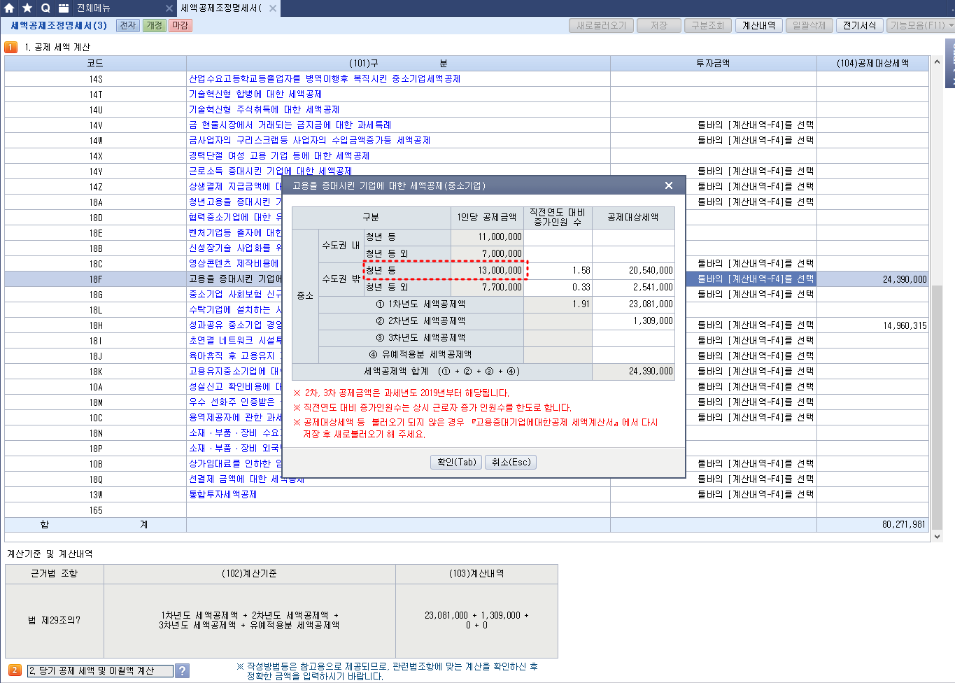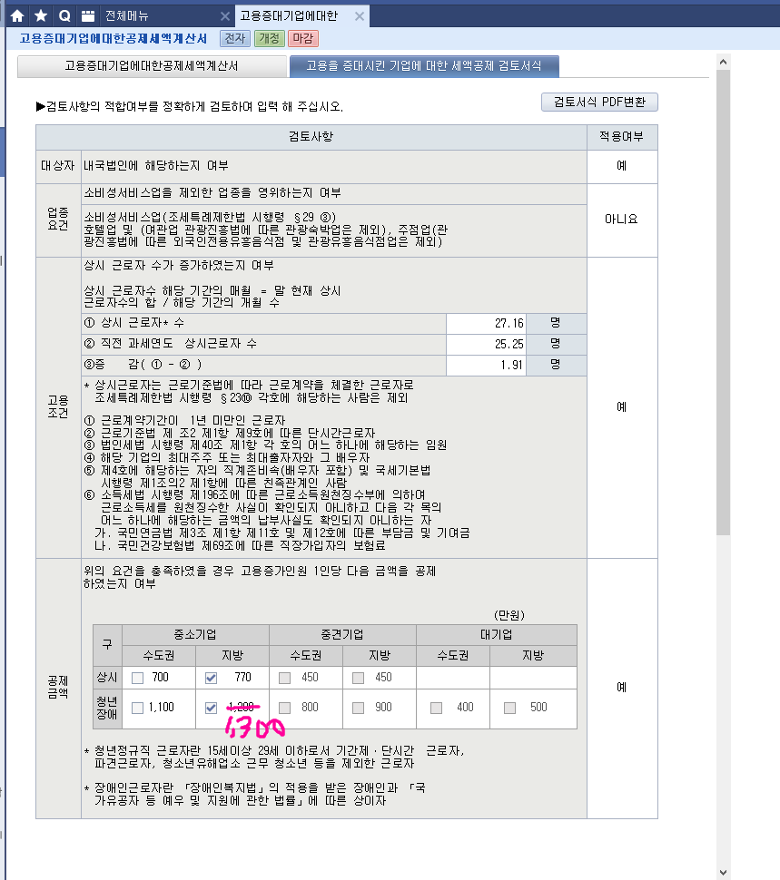 나. 2차년도 세제지원 요건 : (18) ≥ 0