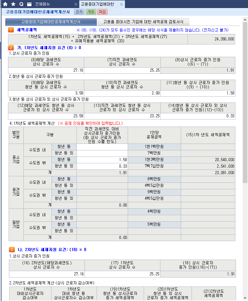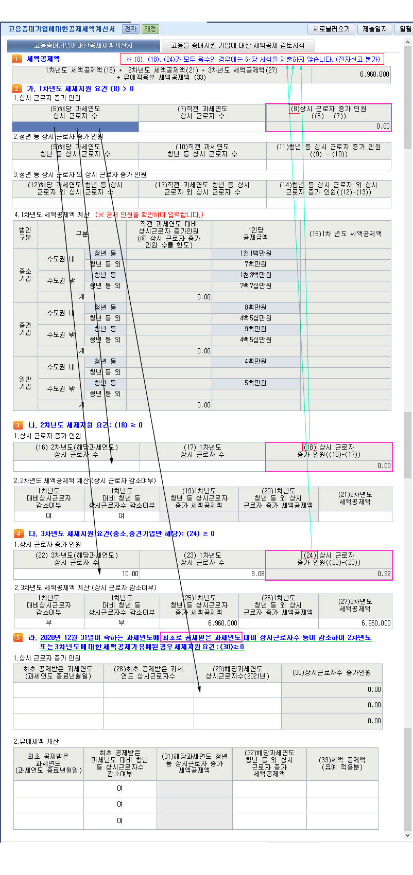 다. 3차년도 세제지원 요건(중소,중견기업만 해당) : (24) ≥ 0