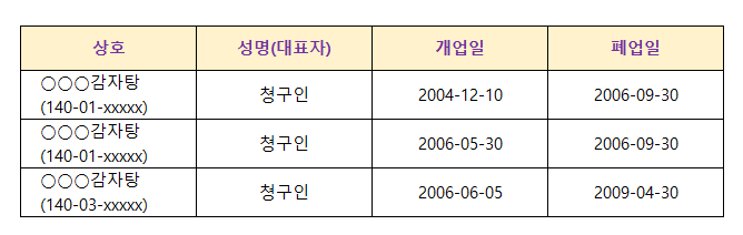 (3) 청구인에 대한 폐업사실증명원의 내용은 다음 <표4>와 같고, 소득금액증명내역은 다음 <표5>와 같다.