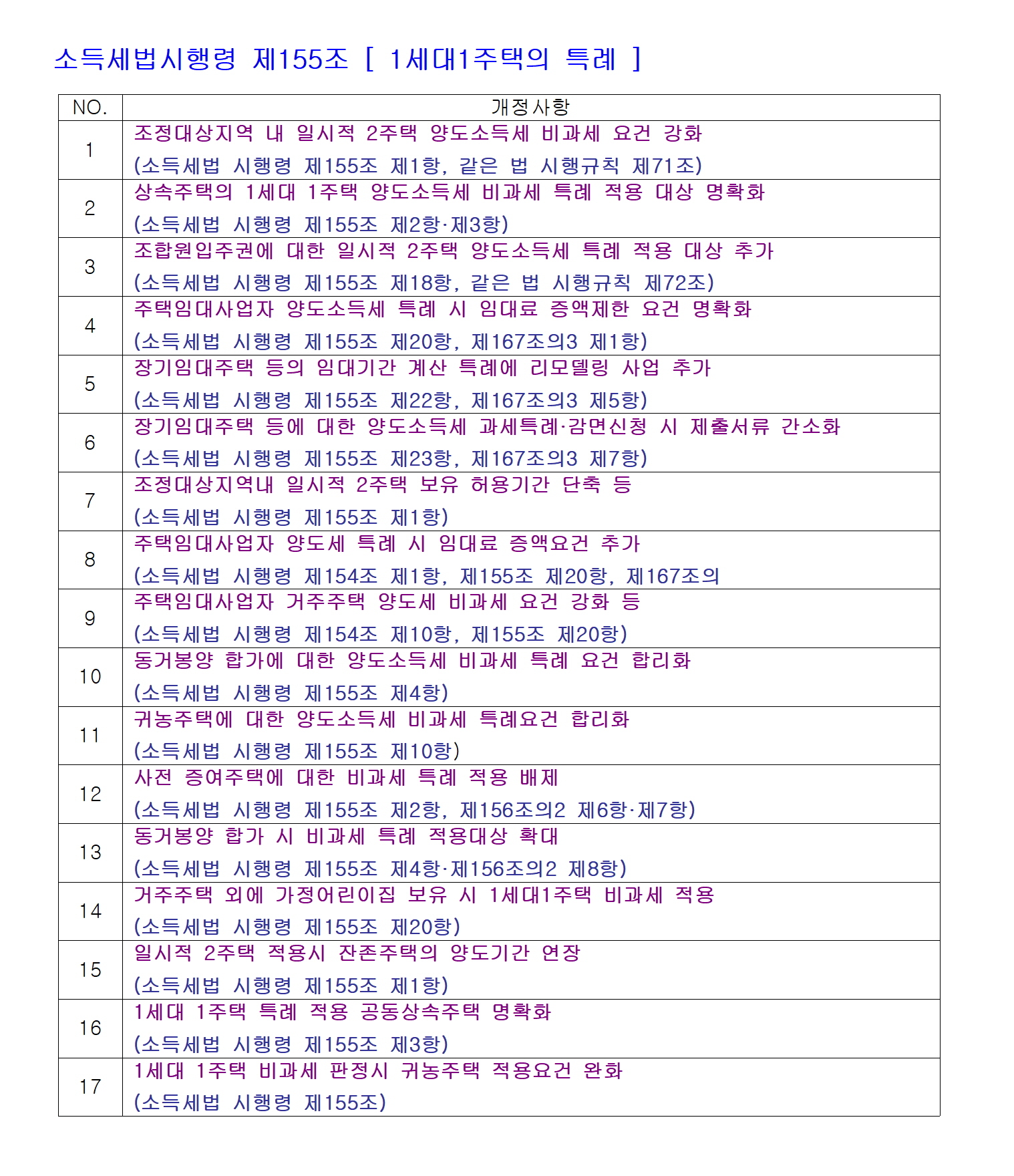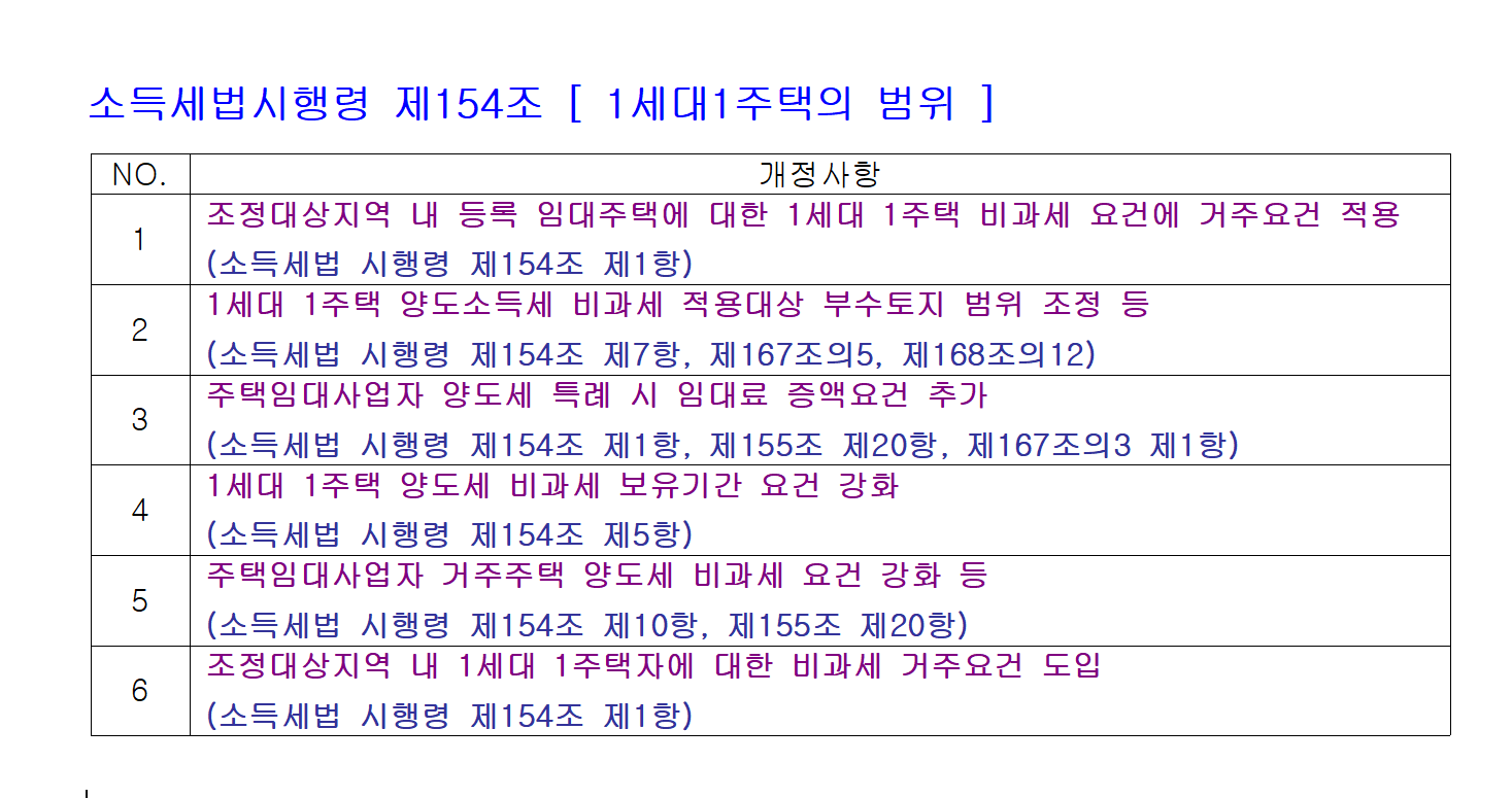 개정연혁 - 소득세법시행령 제154조 [ 1세대1주택의 범위 ] 소득세법시행령 제155조 [ 1세대1주택의 특례 ]
