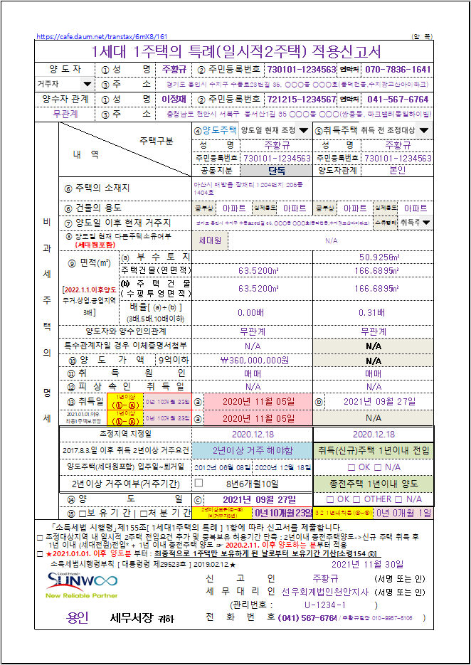 - 1세대 1주택을 민간임대주택 등록 후 임대의무기간 충족 +