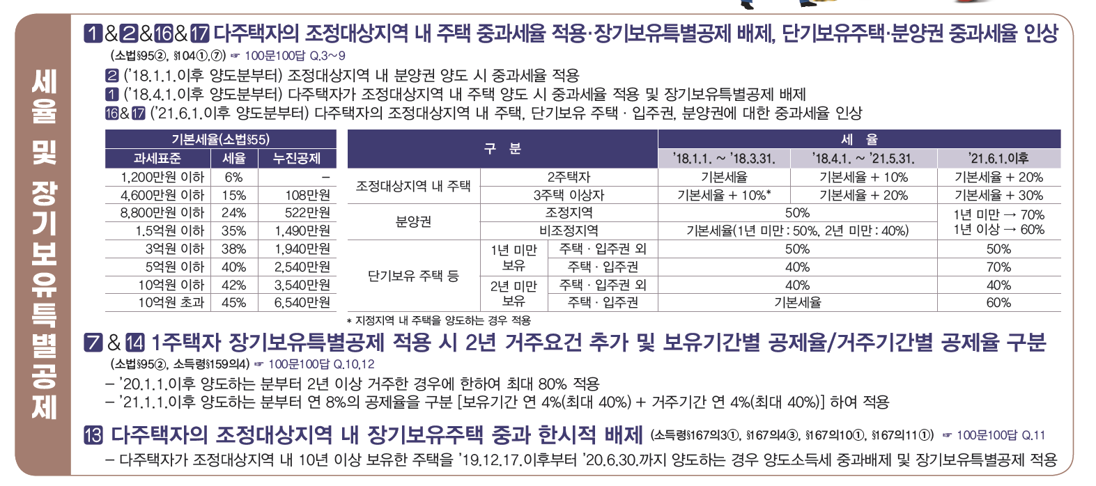 ※경과조치:(i)2018.9.13. 이전 주택 또는 주택을 취득할 수 있는 권리(분양권, 조합원입주권)을 취득한 경우 (ii)2018.9.13 이전 주택 또는 주택을 취득할 수 있는 권리를 취득하기 위한 매매계약 체결+계약금 지급한 경우 → 종전규정 적용