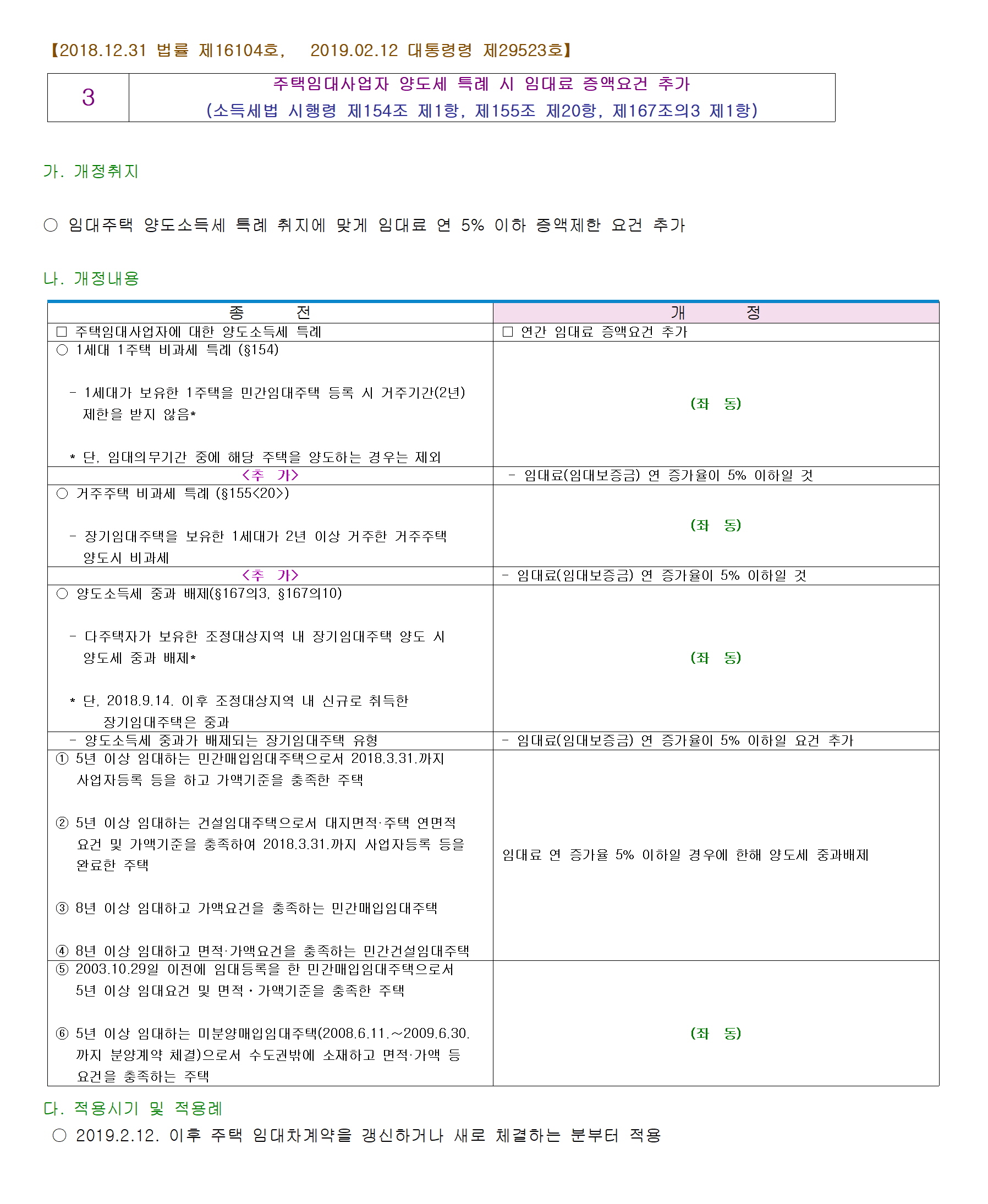 ○ 2019.2.12. 이후 주택 임대차계약을 갱신하거나 새로 체결하는 분부터 적용