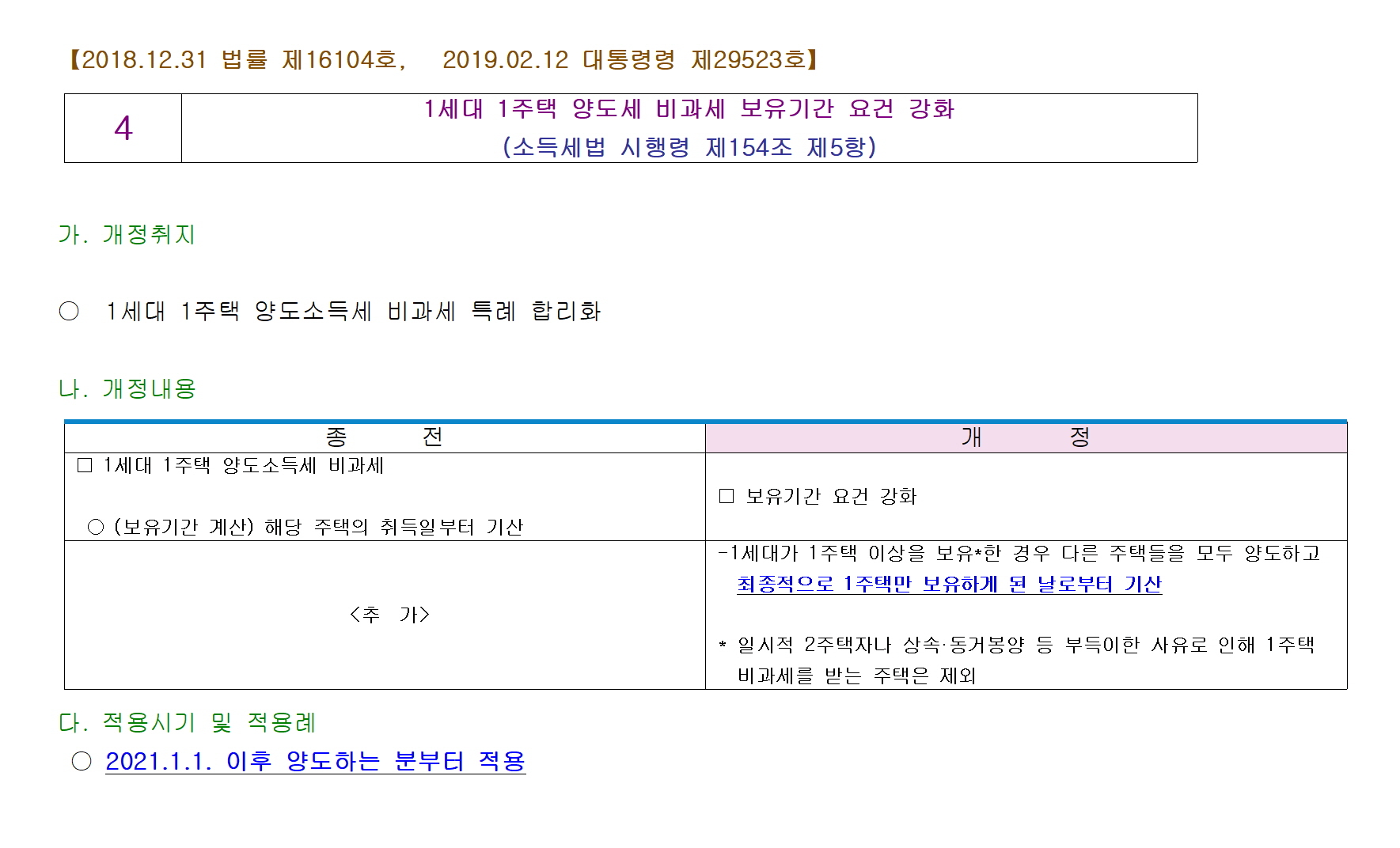 41세대 1주택 양도세 비과세 보유기간 요건 강화