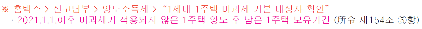 <추 가>-1세대가 1주택 이상을 보유*한 경우 다른 주택들을 모두 양도하고 최종적으로 1주택만 보유하게 된 날로부터 기산
