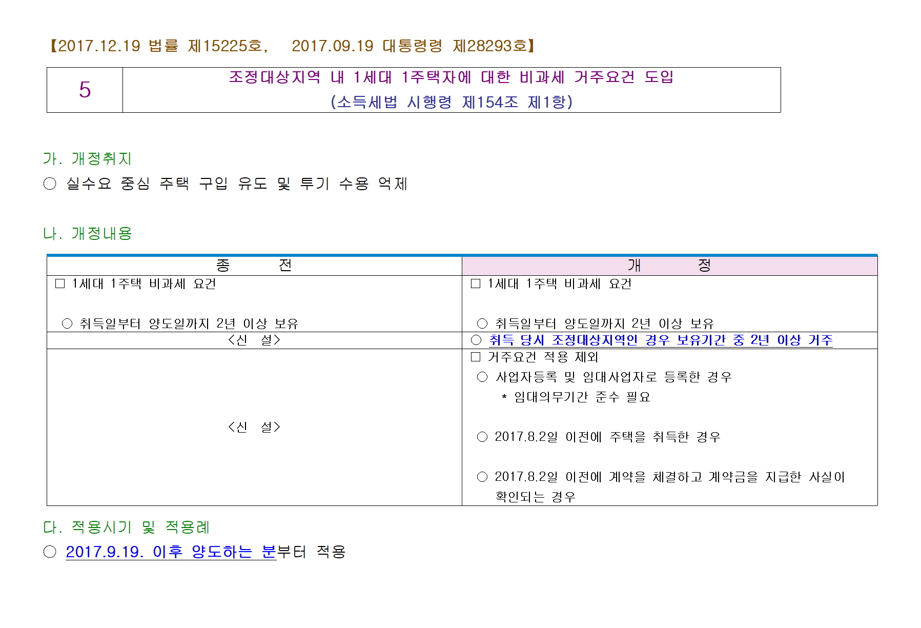 5조정대상지역 내 1세대 1주택자에 대한 비과세 거주요건 도입