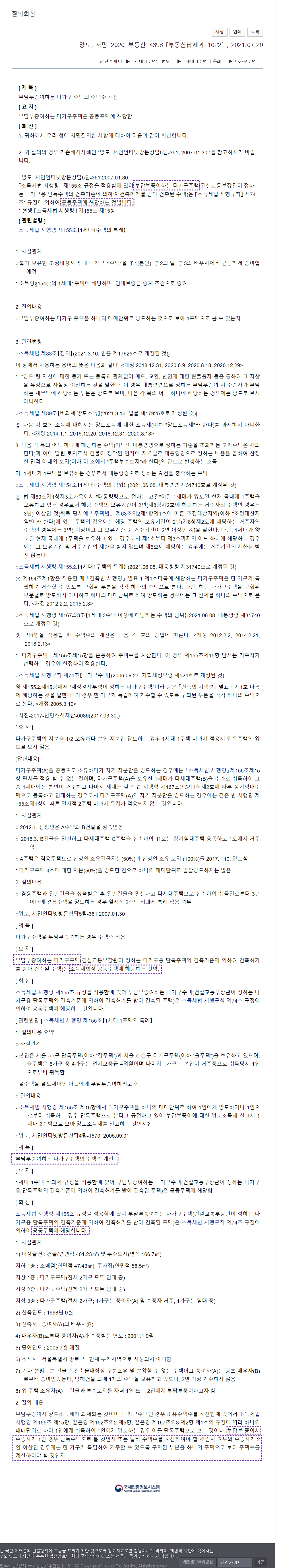 이렇게 판단하면, 다가구주택에 5가구가 거주했다고 하면 1주택자가 아닌 5주택자로 적용된다는 것이고, 1세대1주택 비과세로 판단한 것이 다주택자 3주택 이상 30% 가산율 적용에 장기보유특별공제까지 배제되므로 양도세에 매우 큰 차이가 발생하게된다.