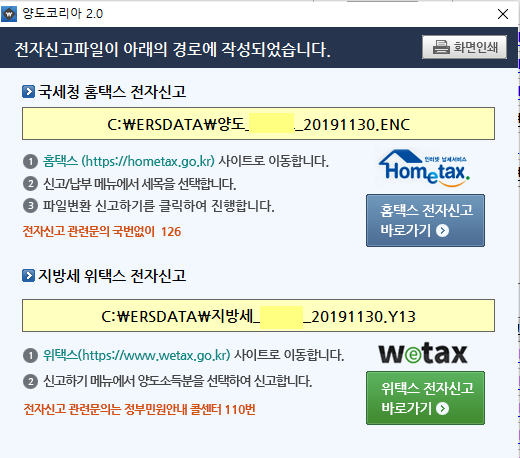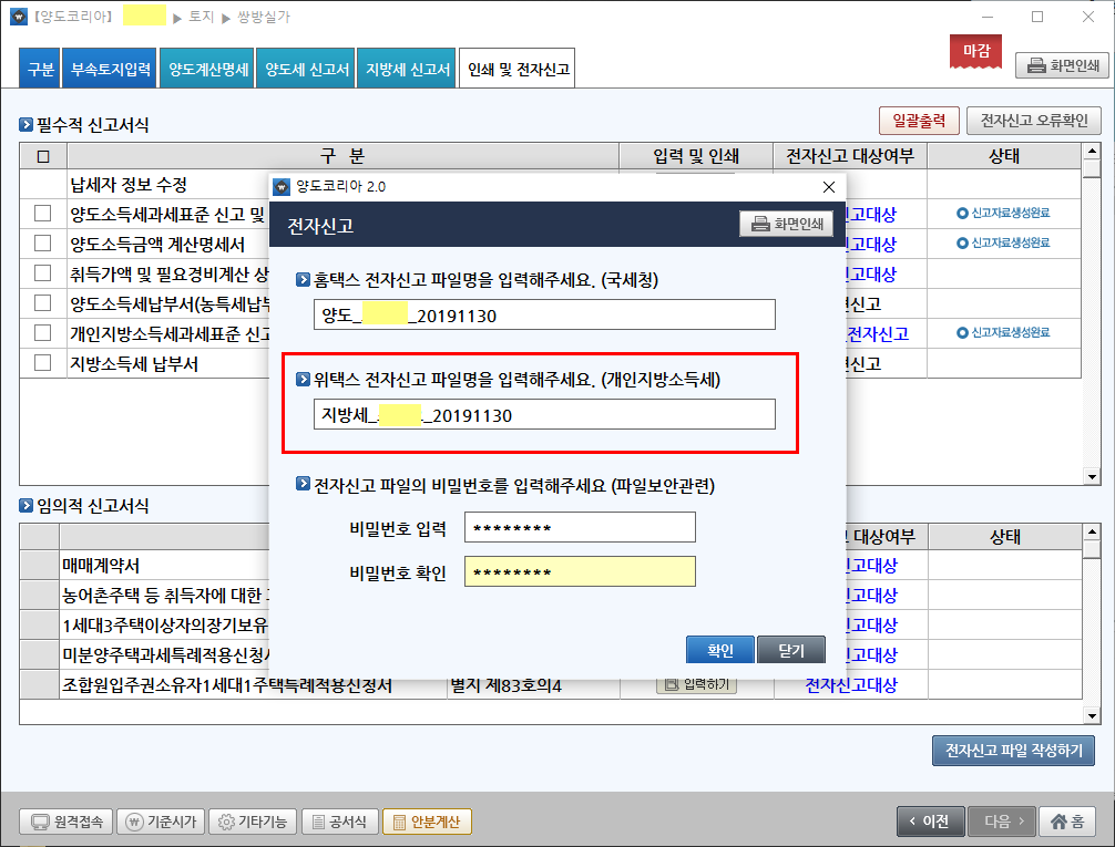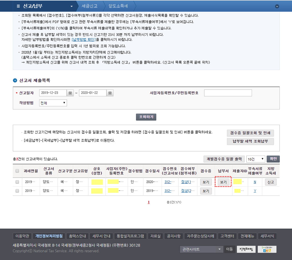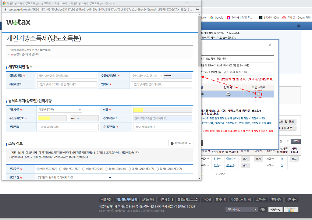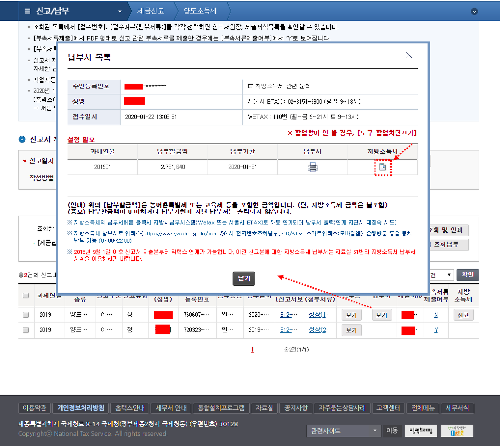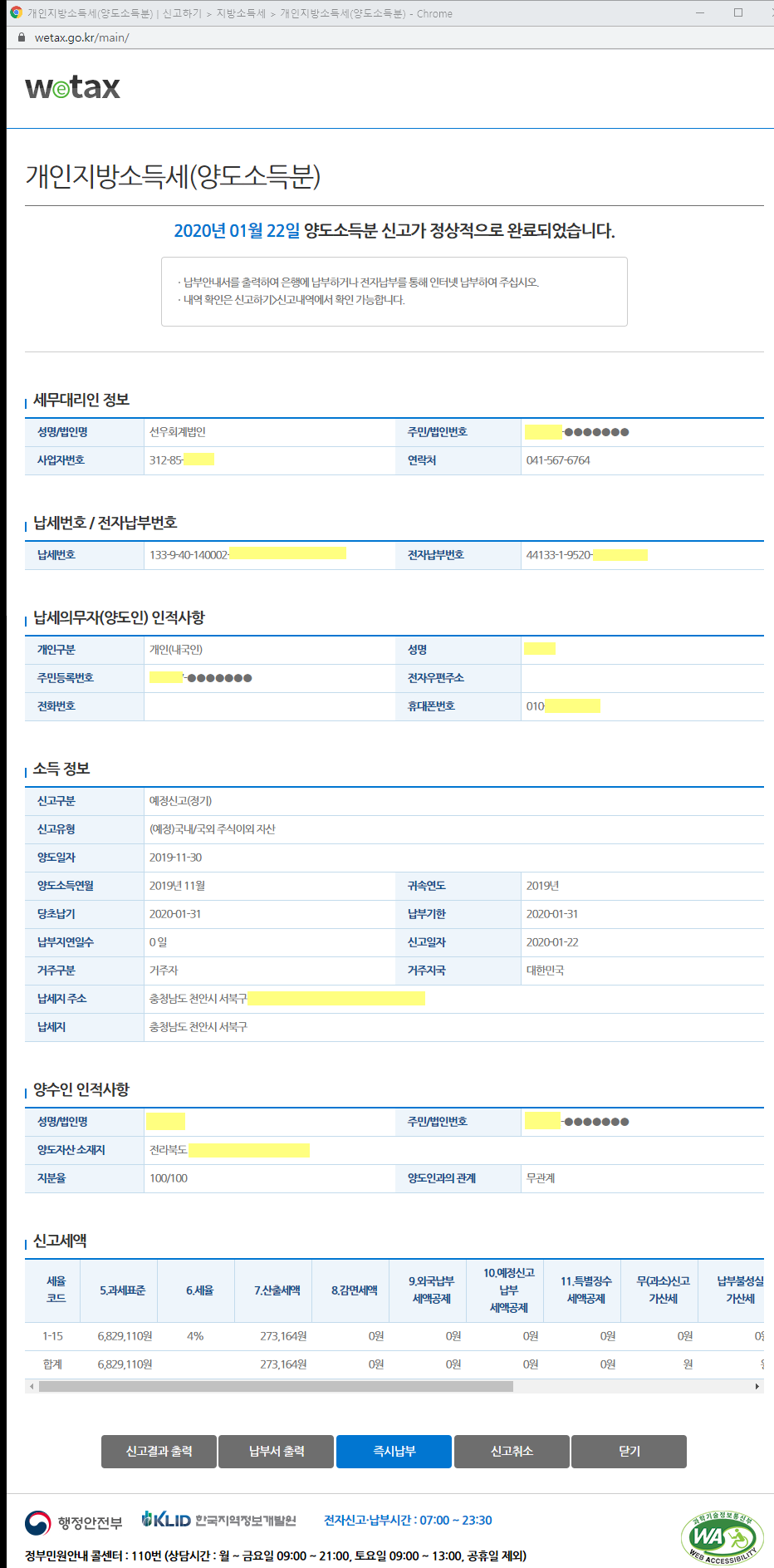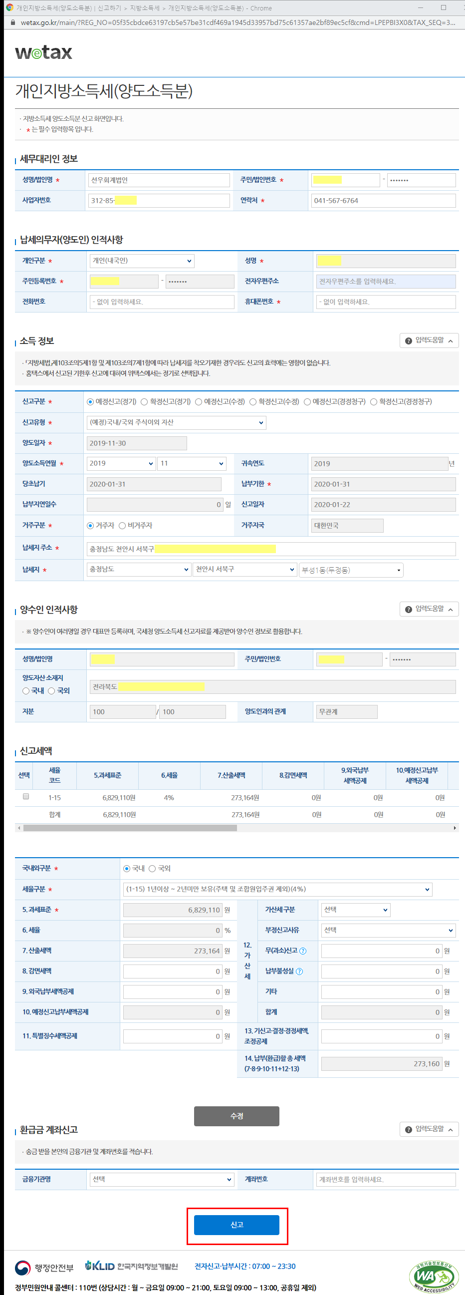 ※ 세무서 양도소득세(국세) 신고시 양도소득분(지방세) 동시 신고납부 가능