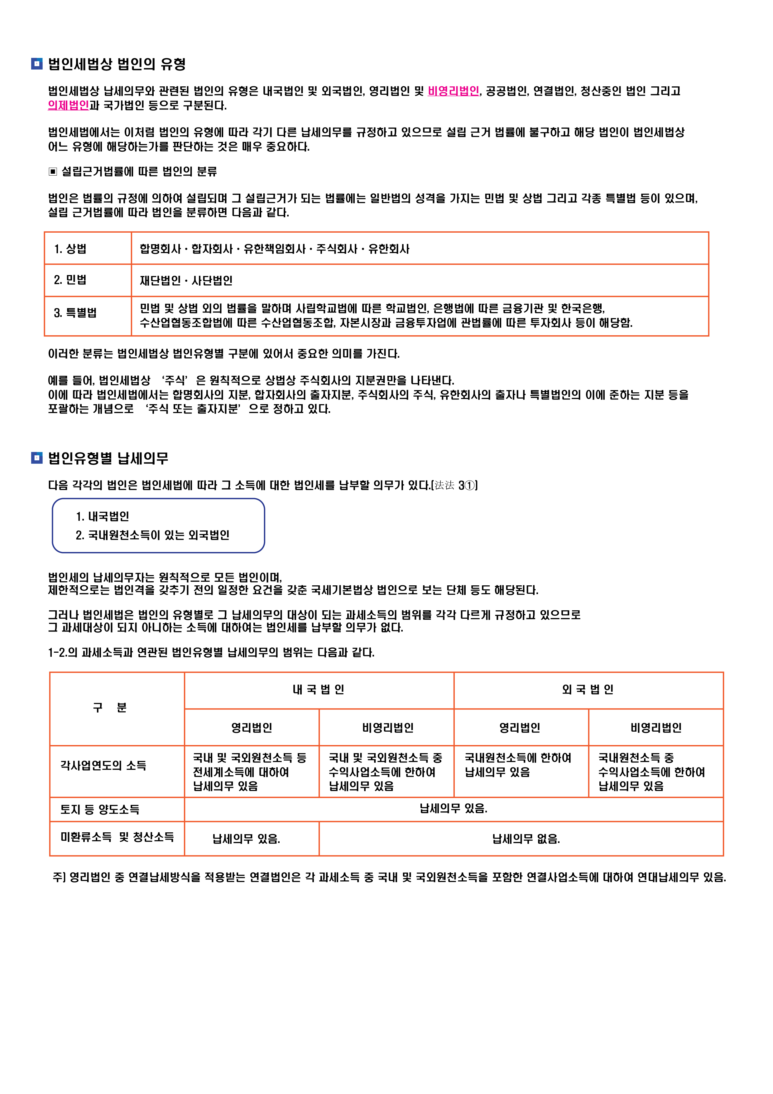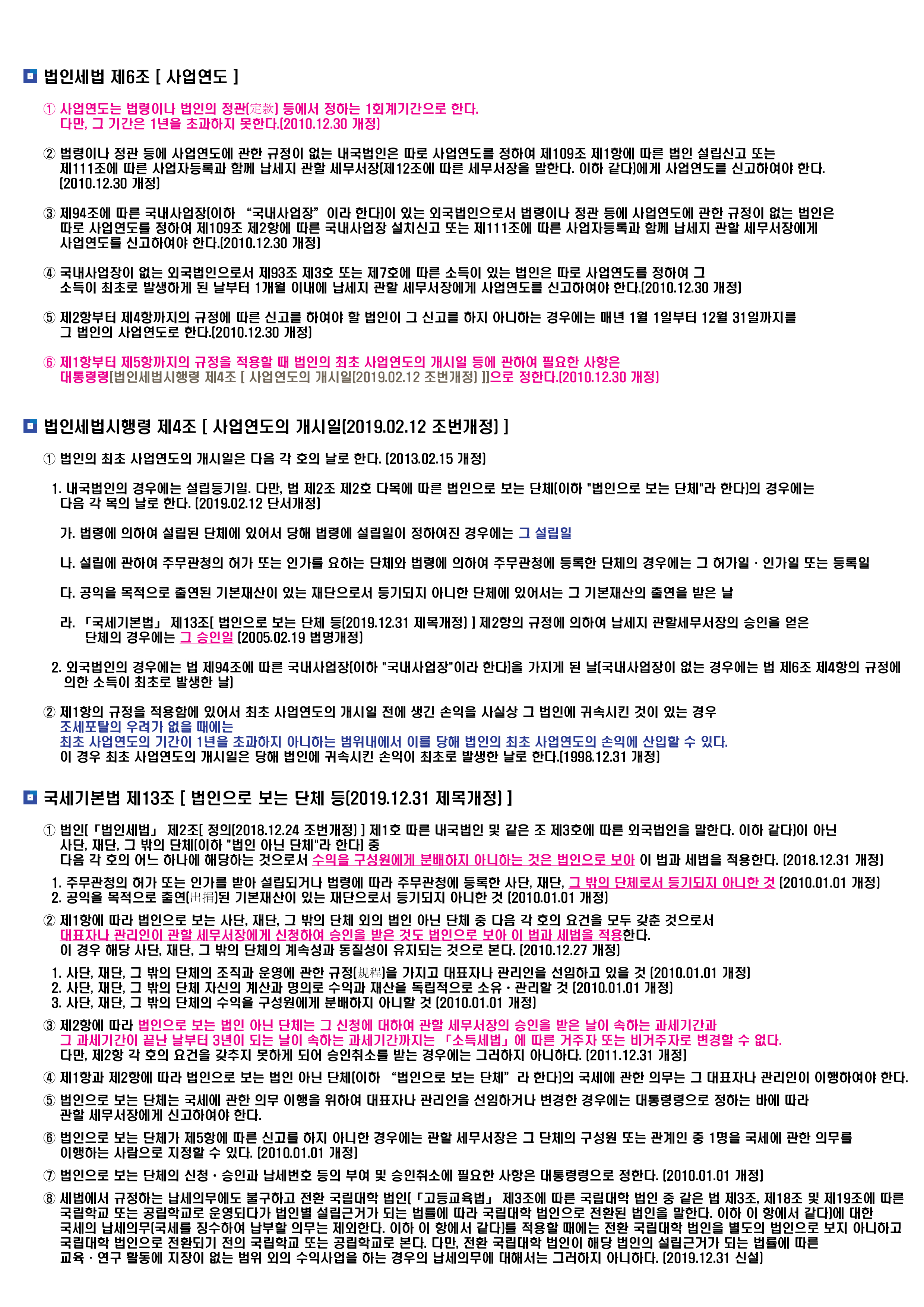 1. "내국법인"이란 본점, 주사무소 또는 사업의 실질적 관리장소가 국내에 있는 법인을 말한다.(2018.12.24 개정)