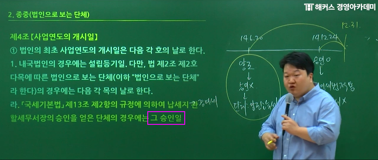 그리고 승인의제법인은 그 신청에 대하여 관할 세무서장의 승인을 받은 날이 속하는 과세기간과