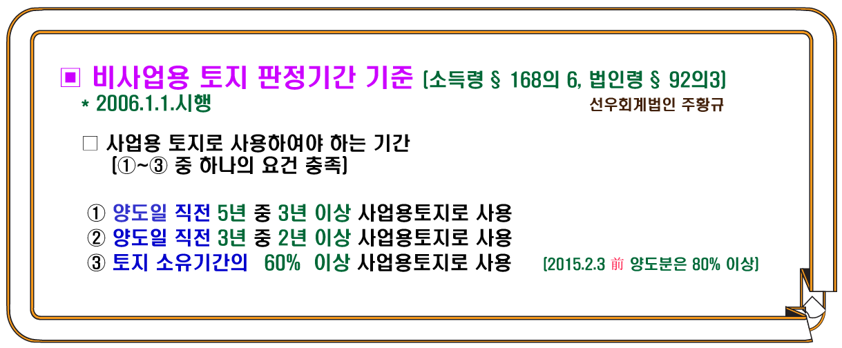 | ※ 축산·양식·임업에 사용한 기간 등의 계산시에도 준용 | * 도소매업, 부동산매매업:3억/제조업 등 1.5억 |
