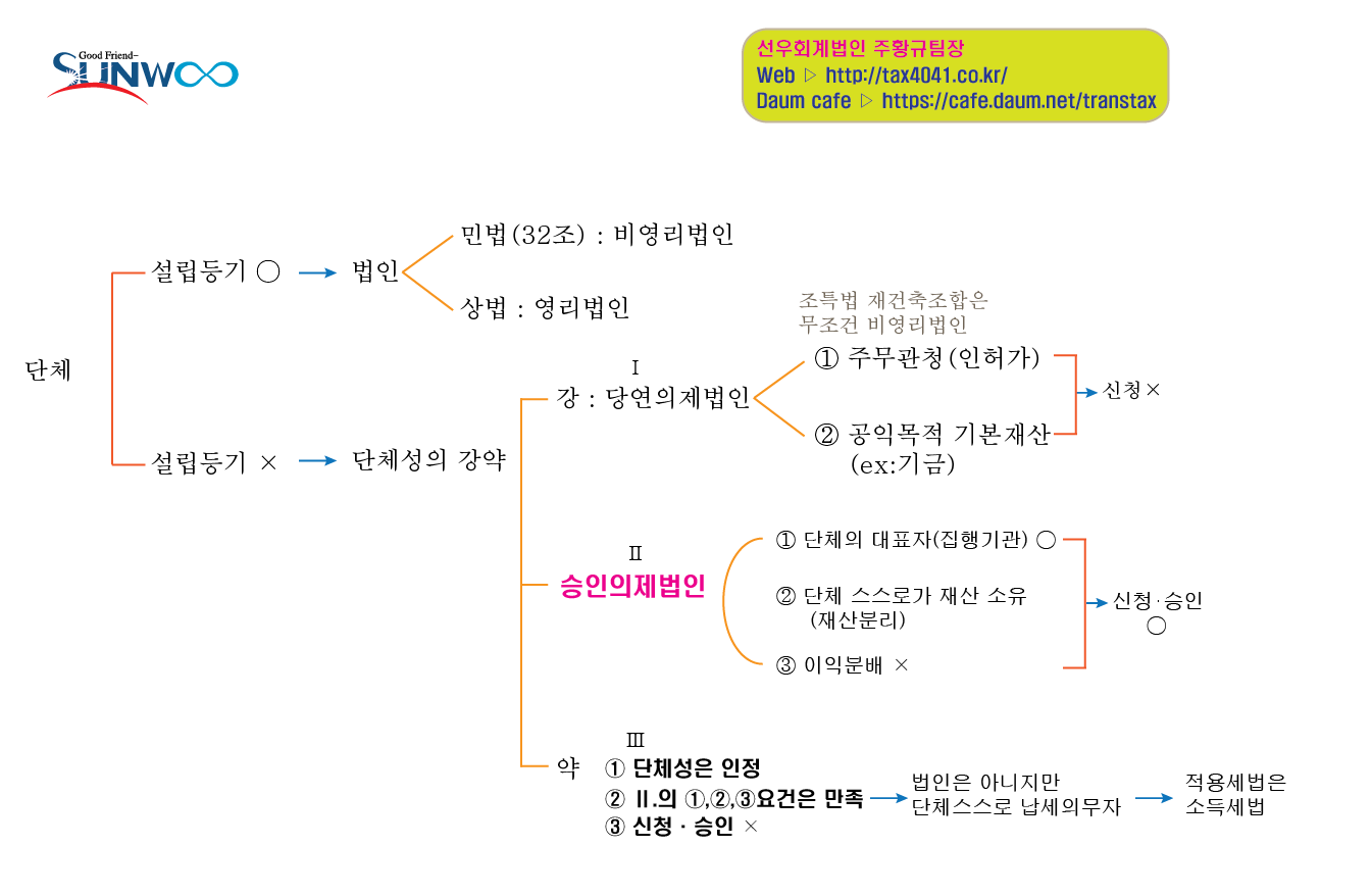 둘째, 승인의제법인은 세무서장의 승인을 얻어 법인으로 간주되는 단체를 말한다.