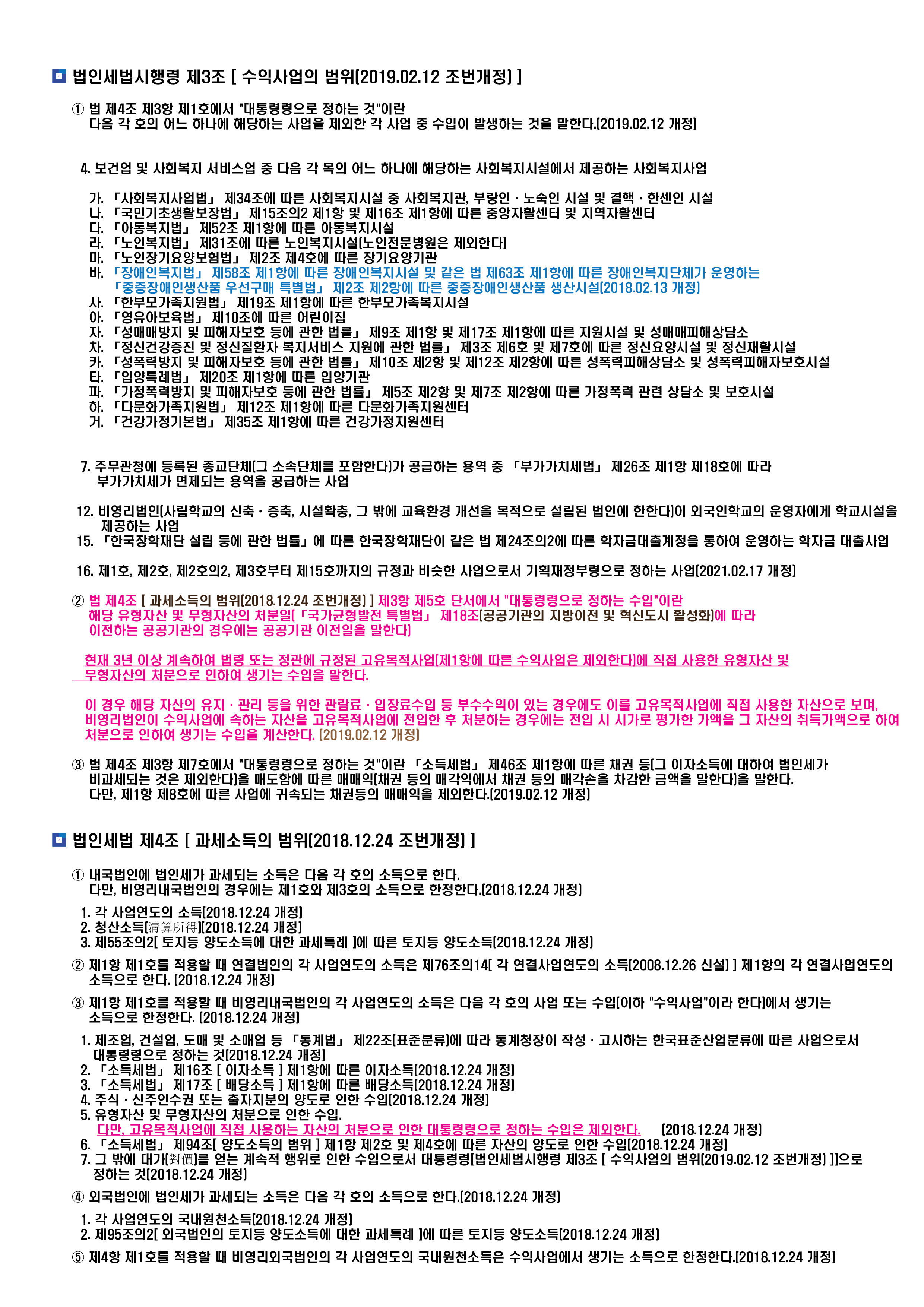 다음에 해당하면 비영리법인으로 보아 ‘수익사업’에 대해서만 법인세를 납부할 의무를 진다.