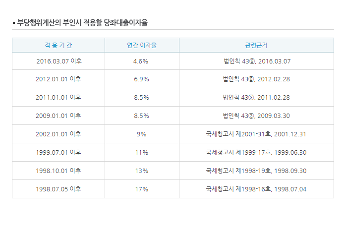 ・ 부당행위계산의 부인시 적용할 당좌대출이자율