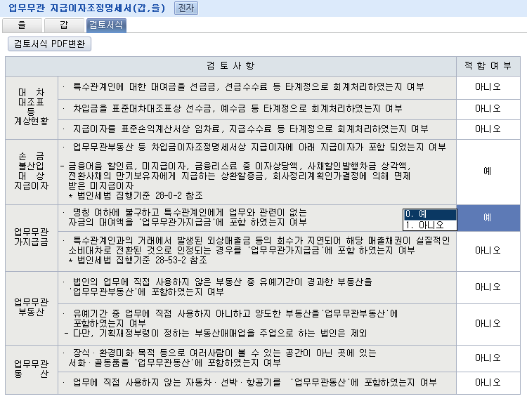 ex1) 가지급금등의 인정이자조정명세서(갑,을) 선택 (12월말 법인 2010년귀속부터 선택하고 3년간 적용