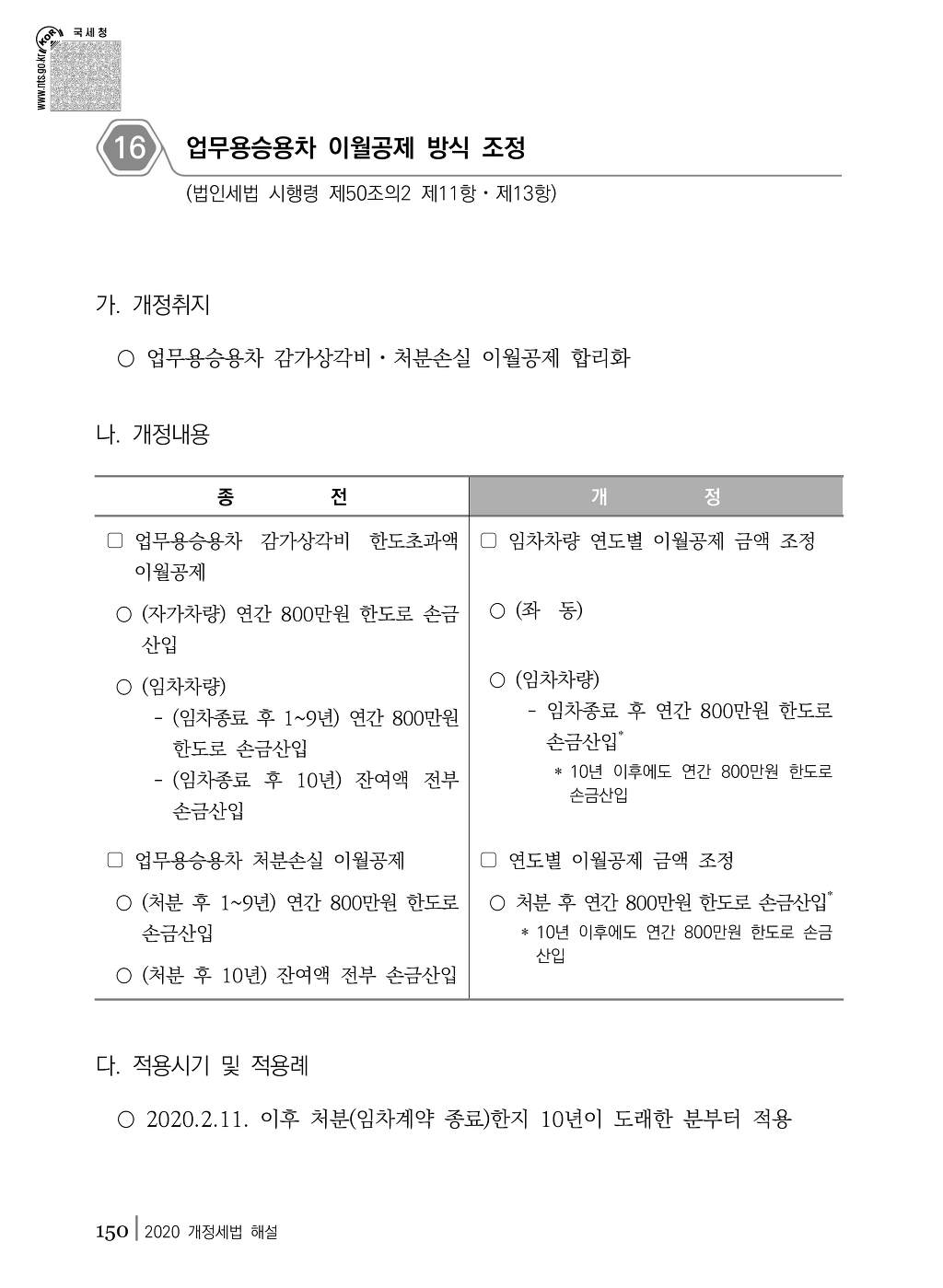 16 - 업무용승용차 이월공제 방식 조정 (법인세법 시행령 제50조의2 제11항·제13항) 작성자주황규|작성시간20.09.18|조회수179 목록 댓글 0 글자크기 작게가 글자크기 크게가 다음검색 현재 게시글 추가 기능 열기 북마크 공유하기 신고 센터로 신고 댓글 댓글 0 댓글쓰기 답글쓰기 댓글 리스트
