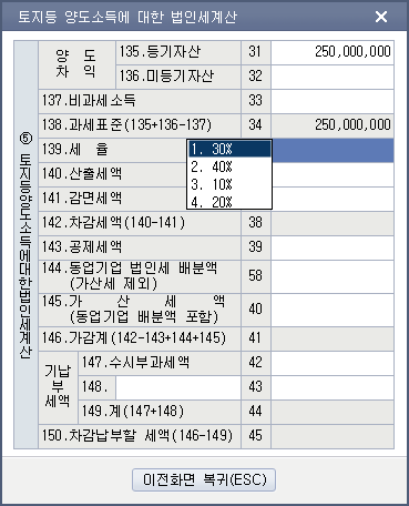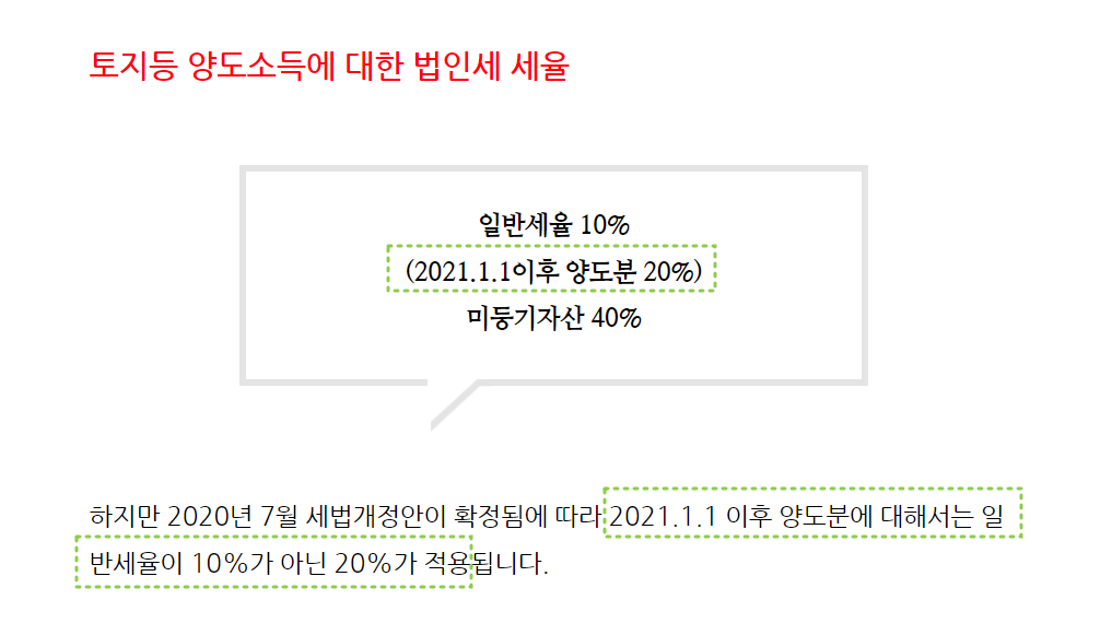 비사업용 토지등 양도소득에 대한 법인세 추가납부 계산 10%,20%,30%,40% (양도가액에서 장부가액을 차감한 금액을 소득금액)
