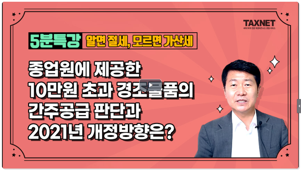 [알면 절세, 모르면 가산세] 종업원에 제공한 10만원 초과 경조물품의 간주공급 판단과 2021년 개정방향은?