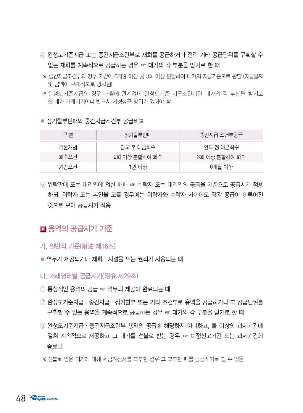 - 단, 재화가 인도되거나 용역제공 완료일 이후에 받기로 한 대가는 재화가 인도되는 날 용역제공이 완료되는 날